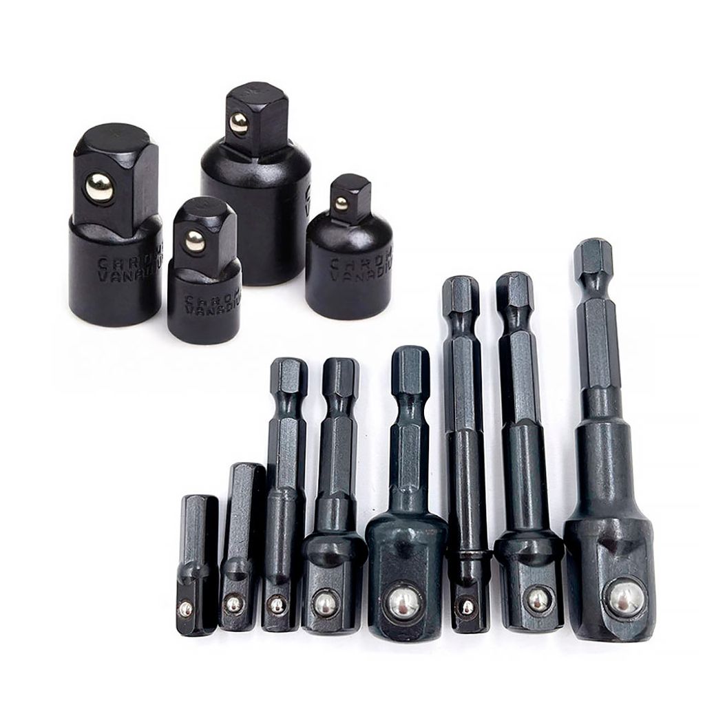 12-delars svart adaptersats och förlängare – bitsadapterset för skruvdragare och hylsnycklar
