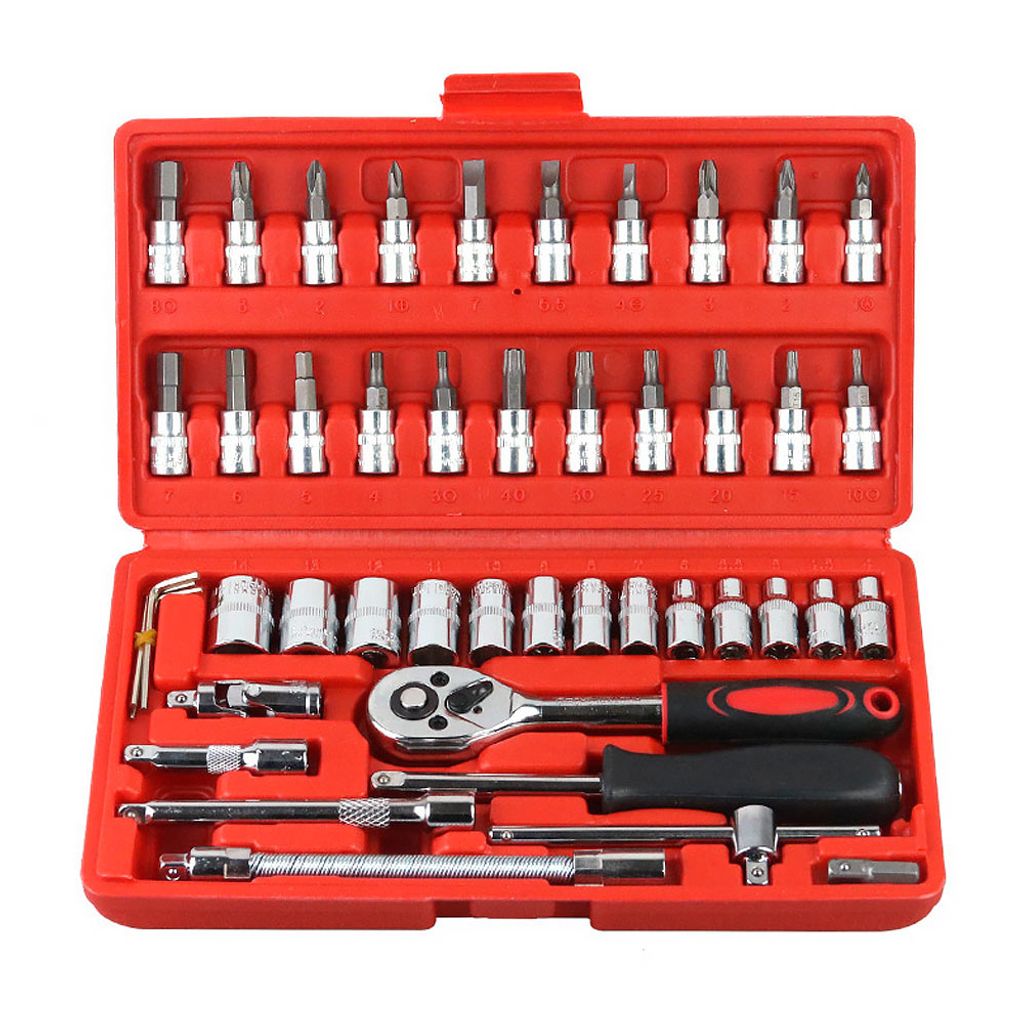 Hylsnyckelsats 46-delar, med 1/4" tums spärrhandtag, Bits/hylsor