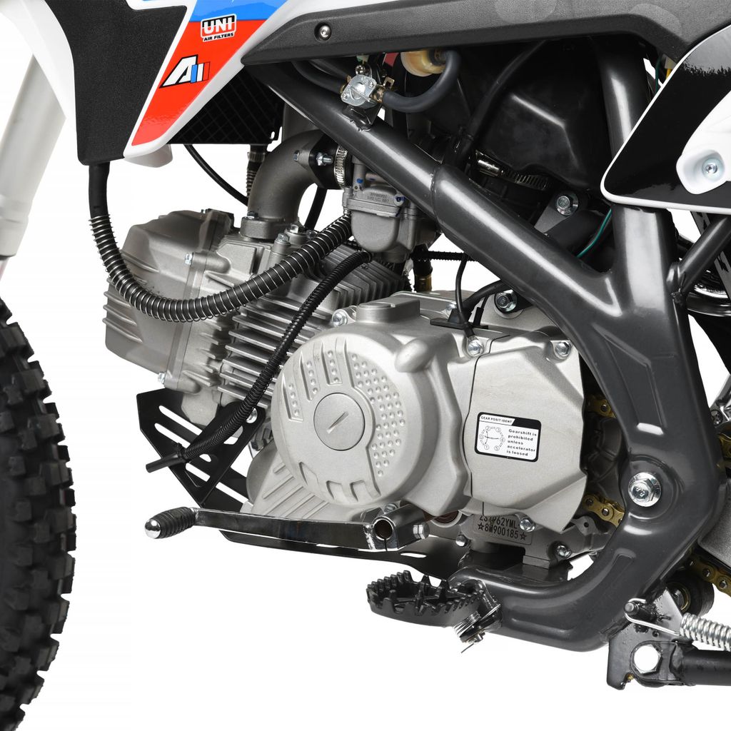 Nibbi kvalitetsförgasare säkerställer optimal effekt samt ett nytt luftreningssystem med en luftburk och utbytbara skumgummifilter. Senaste versionen av Zongshen 190cc på hela 17 hästkrafter ger crossen överlägsen prestanda och kraft. Utrustad med oljefönster, oljefilter och oljekylare. Hjulstorleken är 17 tum fram och 14 tum bak med däcklås monterade som standard. Utrustad med 15mm hjulaxlar för att klara av hög belastning.