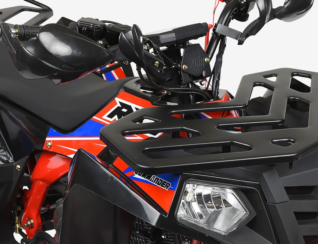 Commander 125 V3 har uppgraderats med kraftiga hydrauliska skivbromsar fram, ett extra stabilt lastgaller framtill och handtagsskydd för extra säkerhet. Den nya kraftiga baksvingen har ett rejält drag, och gummiupphängningen för motorn bidrar till minskade vibrationer och bekvämare körning. Ställbar gas och heltäckande fotplattor säkerställer en trygg och kontrollerad körupplevelse.