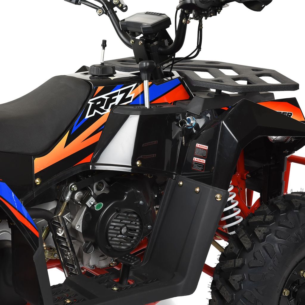 Fyrhjulingen är designad med fokus på körkomfort och ergonomi. Den har en bred, välstoppad sadel och ett brett styre som ger föraren god kontroll över maskinen. Ställbart tumgasreglage gör det möjligt att justera gaspådraget för att anpassa fyrhjulingen efter förarens körstil och erfarenhet. Dessutom är den utrustad med heltäckande fotplattor för extra säkerhet och stabilitet vid körning.