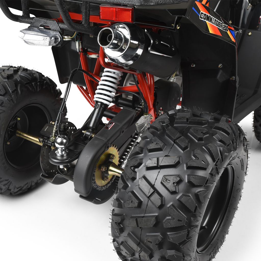 Commander 200 är en kraftfull och välbyggd fyrhjuling som erbjuder en perfekt kombination av prestanda, komfort och funktionalitet. Med sin robusta konstruktion, helautomatisk CVT-växellåda och pålitliga 200cc motor är den både lättkörd och kapabel att hantera tuffare körförhållanden. Den är utrustad med hydrauliska skivbromsar, en kraftig bakaxel med excentriskt fäste samt en 50 mm dragkula för extra mångsidighet. Oavsett om den används för nöjeskörning eller enklare arbetsuppgifter är Commander 200 ett stabilt och pålitligt val.