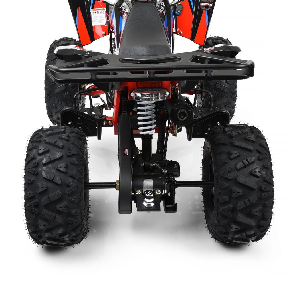 Falcon 125cc är en sportig och kraftfull fyrhjuling som bygger på många års erfarenhet och utveckling. Den kombinerar en häftig design med utmärkta köregenskaper och är konstruerad för både stabil och rolig körning, vare sig det är på bana eller i mer krävande terräng. Med hög markfrigång och ett balanserat chassi erbjuder den en smidig och säker körupplevelse. Fyrhjulingen är allsidig, robust och anpassad för både vuxna och barn från cirka 9 år.