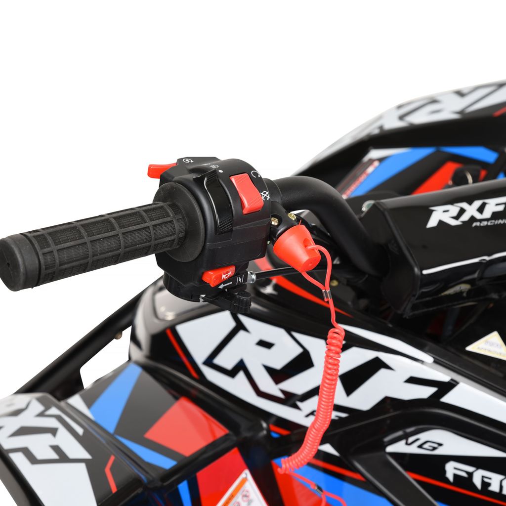 Falcon 125cc är en sportig och kraftfull fyrhjuling som erbjuder både stabilitet och hög prestanda för förare från 9 år och uppåt. Med sin halvautomatiska motor, grovmönstrade däck och robusta konstruktion är den anpassad för både tuff terräng och bana. Den är utrustad med avancerade säkerhetsfunktioner, fjärravstängning och en kraftig bakaxel, vilket gör den till ett tryggt och mångsidigt val för både nöje och praktisk användning.
