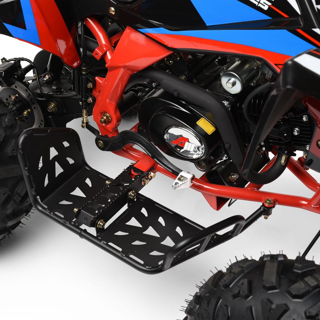 Falcon 125cc är utrustad med en halvautomatisk motor som har tre växlar plus back. Växlingen sker enkelt via fotpedalen, utan behov av kopplingshandtag, vilket gör fyrhjulingen lättkörd och anpassad för både nybörjare och mer erfarna förare. Med en stark motor blir den både kraftfull i låga hastigheter och snabb på högre växlar.