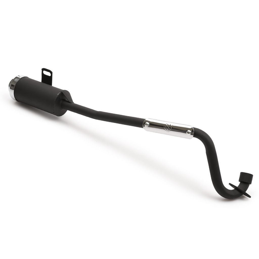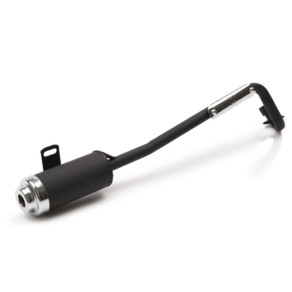 Helsvetsat avgassystem vilket innebär att ljuddämparen är fastsvetsad i avgasröret. Passande barnfyrhjuling där avgasröret går ovanför motorn och bakåt. Kan även passa vissa mindre Dirtbike / Fiddy modeller.
