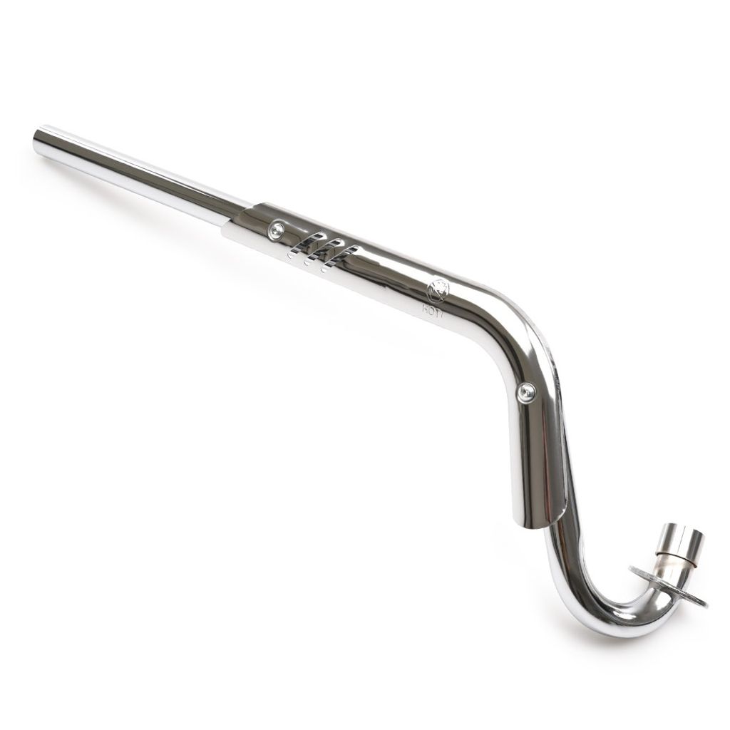 Universal avgassystem utav bra kvalitet med avgasrör i kromat stål och en stor värmesköld. Ljuddämpare i aluminium, inklusive upphängning / klämma till ljuddämparen. En standard M6 skruv erfordras för att fixera ljuddämparen mot avgasröret. Passar en rad olika modeller av Cross / Dirtbike 125cc, 140cc samt även större motorer på 150cc och 160cc med liggande cylinder.