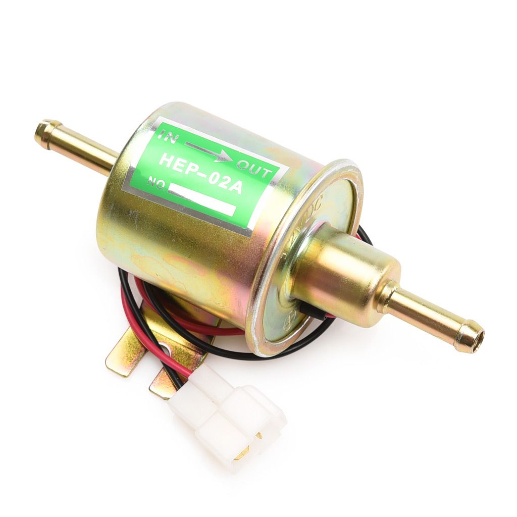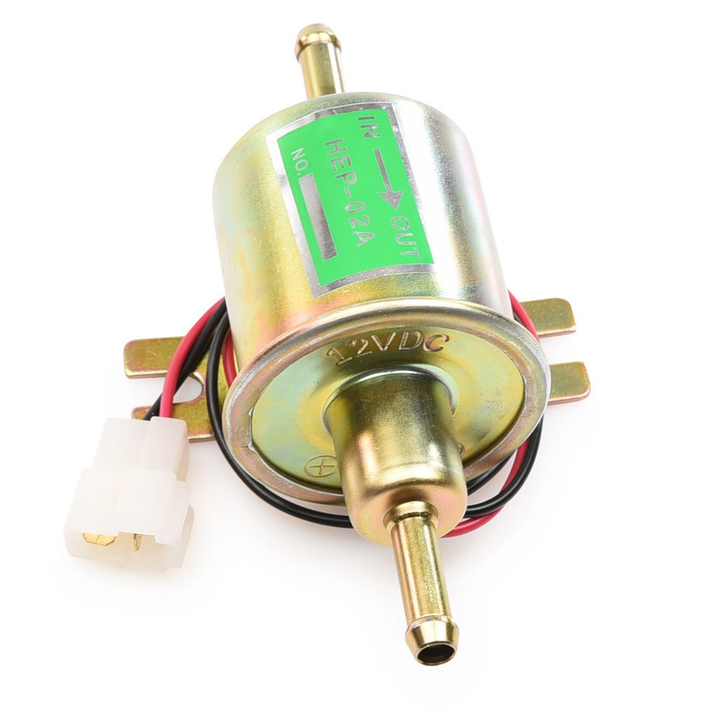 Elektrisk bränslepump HEP-02A anpassad för bensin och diesel. 12v anslutning med en 2-polig kontakt med flatstiftskontakter.