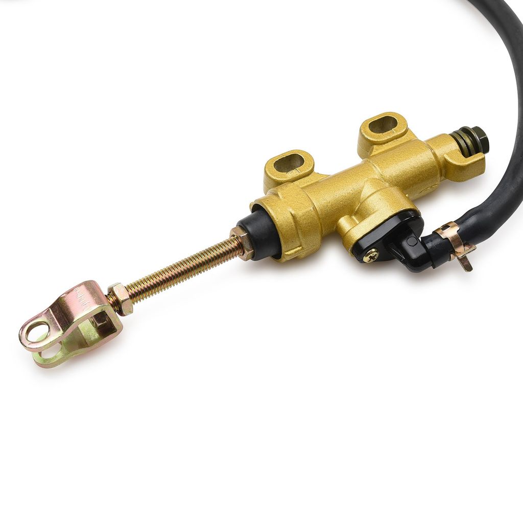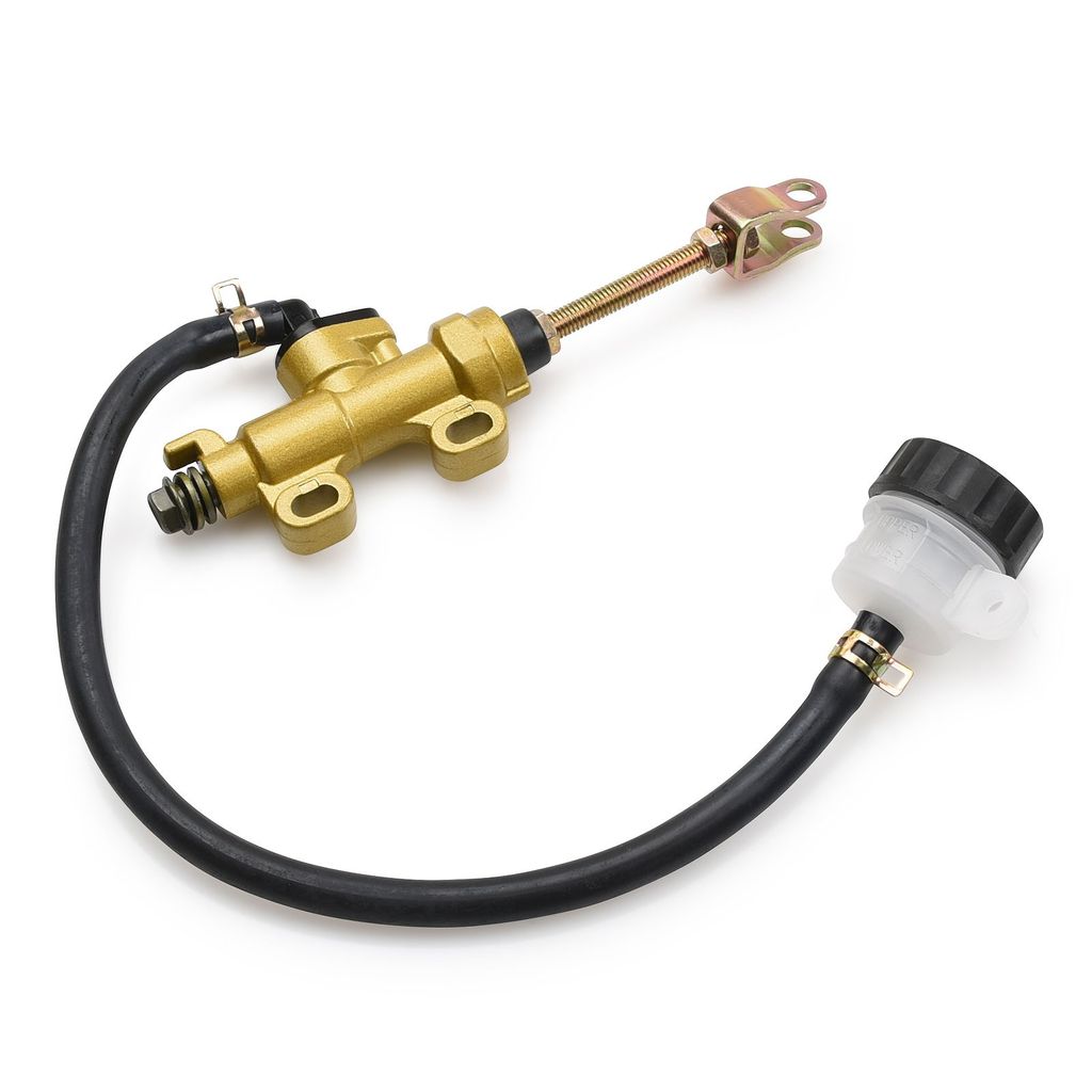 Kraftig bromscylinder utav hög kvalitet. Separat behållare för bromsvetska underlättar påfyllning och säkerställer tillräcklig mängd. Universal modell passande en rad olika modeller av cross / Fiddy och fyrhjuling från 50cc, 70cc, 90cc, 110cc samt större maskiner 125cc, 150cc och 250cc. Levereras inklusive M10 banjobult med packningar.