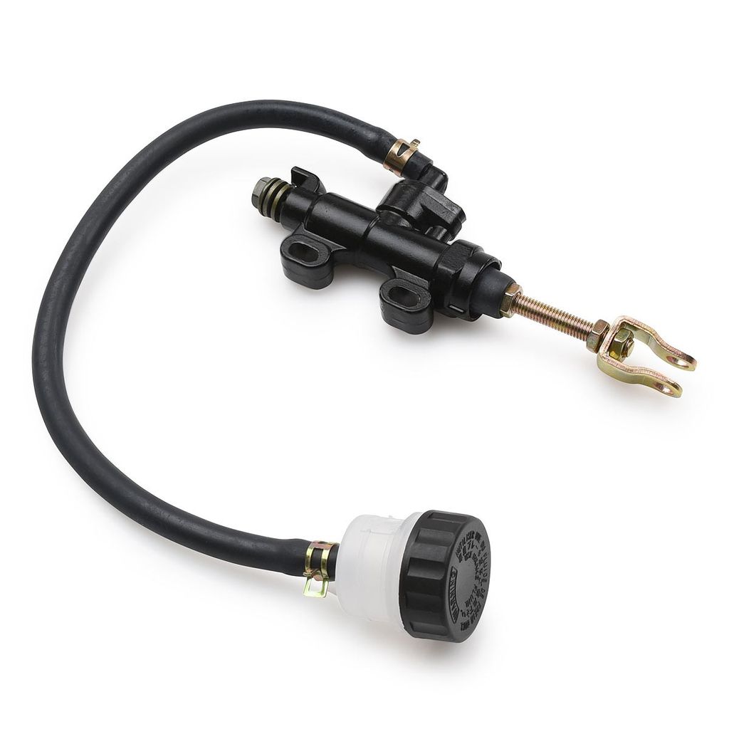 Kraftig universal bromscylinder utav hög kvalitet. Separat behållare för bromsvetska säkerställer tillräcklig mängd och färre påfyllningar. Kompatibel med många olika modeller av cross / Fiddy och ATV 70cc, 90cc, och större maskiner 125cc, 150cc 250cc. Levereras inklusive M10 banjobult med packningar.