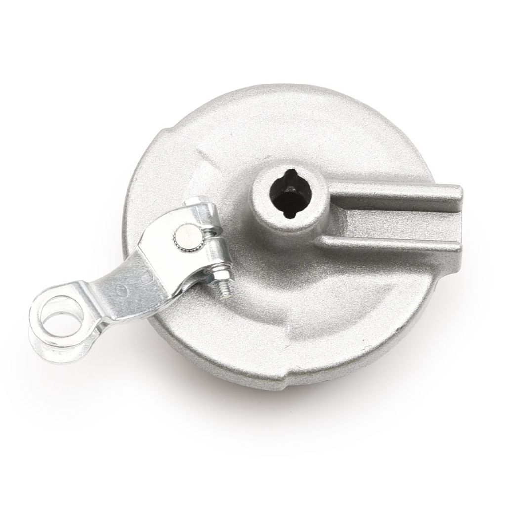 Bromssköld utav hög kvalitet inklusive bromsbackar. Anpassad för bakbroms med 80mm trumma och 12mm axel / hjulbult. Passande bl.a Apollo barn cross / dirtbike AGB21 av CRF50 typ vanligast mellan 70cc och 90cc.