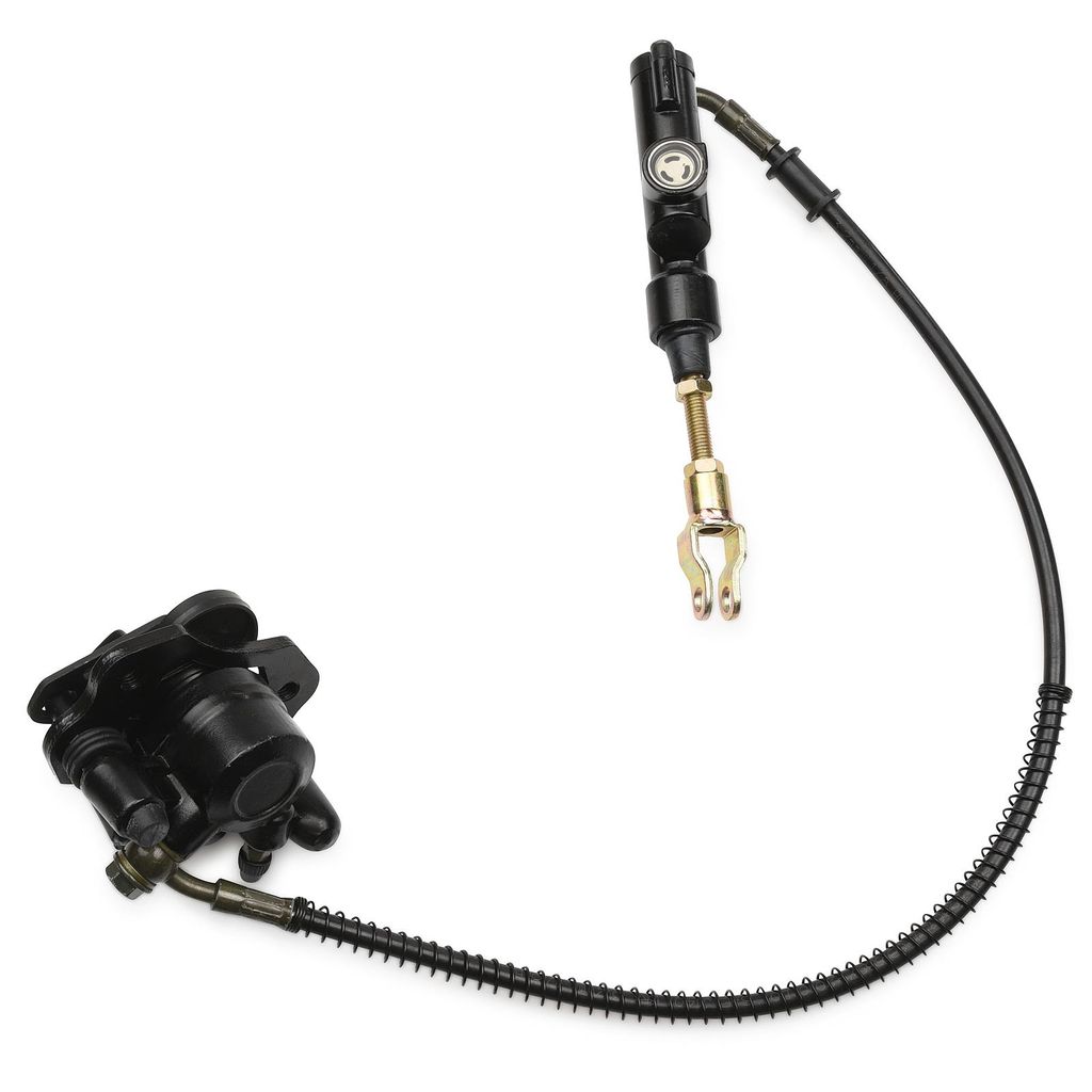 Komplett bromssystem bak inkl. bromsbelägg. Bra kvalitet i svart finish. Anpassat för fyrhjuling / ATV med fotbroms / fotpedal. Vanligt förekommande på modeller från 50cc 4-takt till 125cc och vissa 140cc.