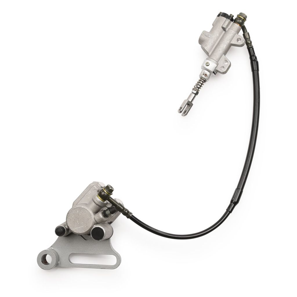 Apollo Bromssystem utav hög kvalitet anpassat för cross / Dirtbike AGB37-5 och liknande modeller. Stålomspunnen hydraulslang. Påfyllt och klart att användas.