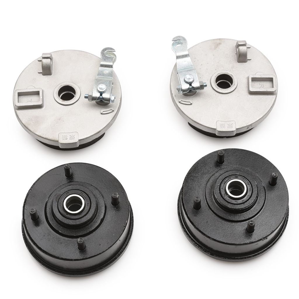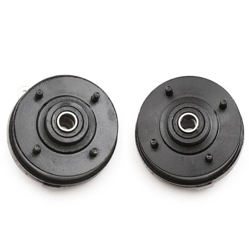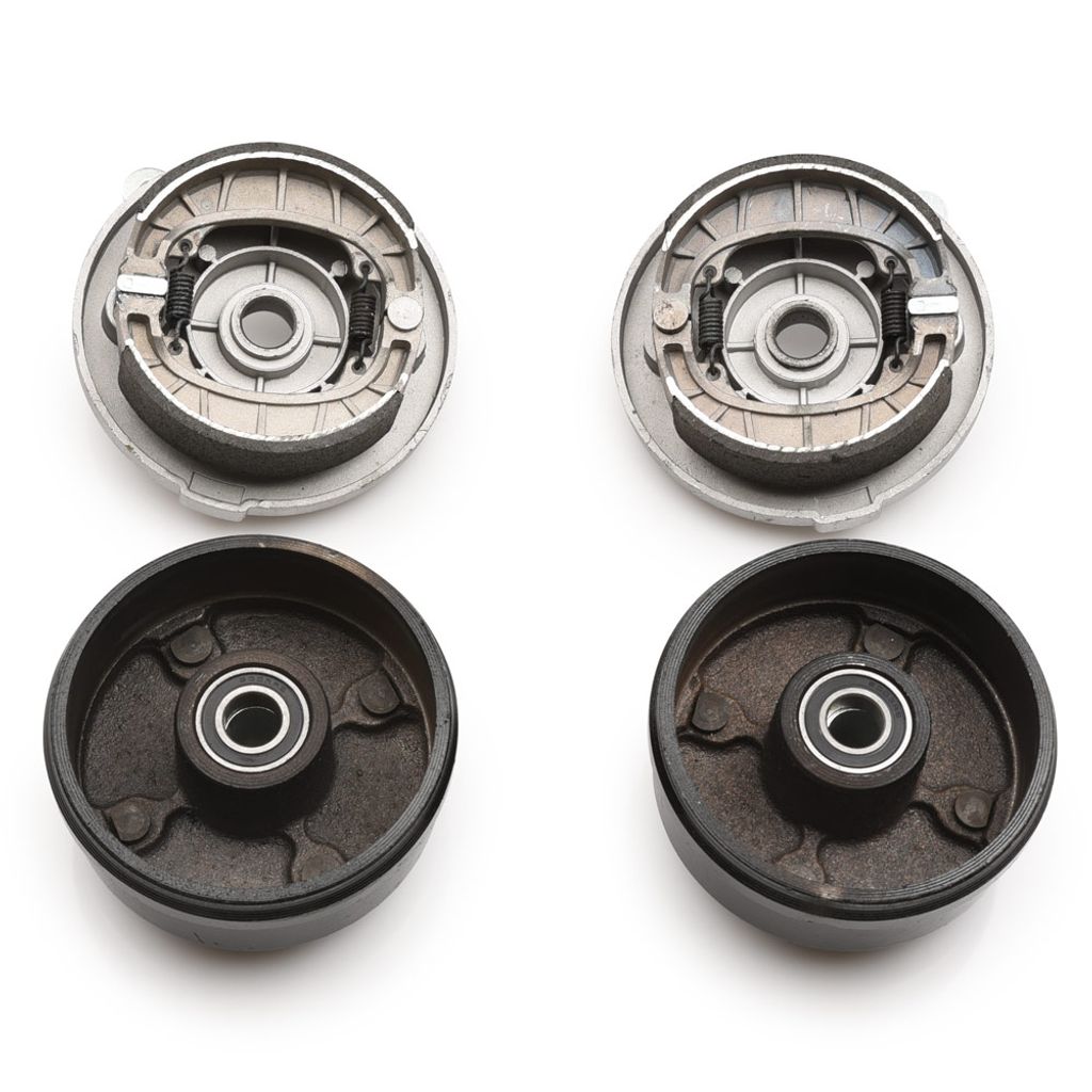 Vänster och höger bromstrumma inklusive bromssköld och bromsbelägg / bromsbackar. Hög kvalitet med tätade kullager, distans och packbox. 4 - bultars fattning till fälg. Vanligt förekommande på fyrhjuling / ATV 125 - 250cc som använder mekaniska frambromsar med bromsvajer.
