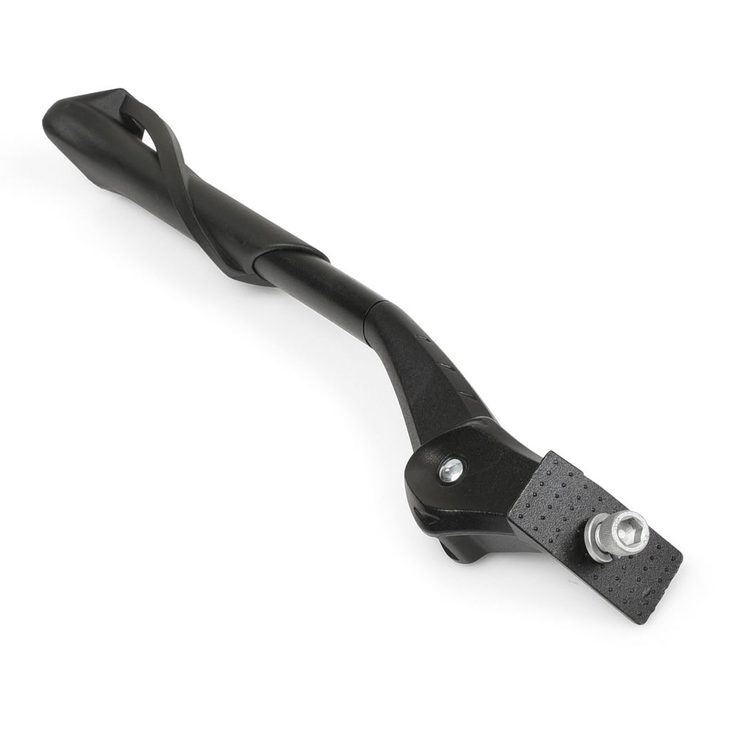 Cykelstöd universal utav hög kvalitet. Kraftig konstruktion i aluminium. Passande de flesta cyklar som har ett monteringshål i ramen bakom vevlagret. Stödets längd går att justera för att passa de flesta cyklar med hjulstorlekar 24-28 tum. Inklusive bult M10.