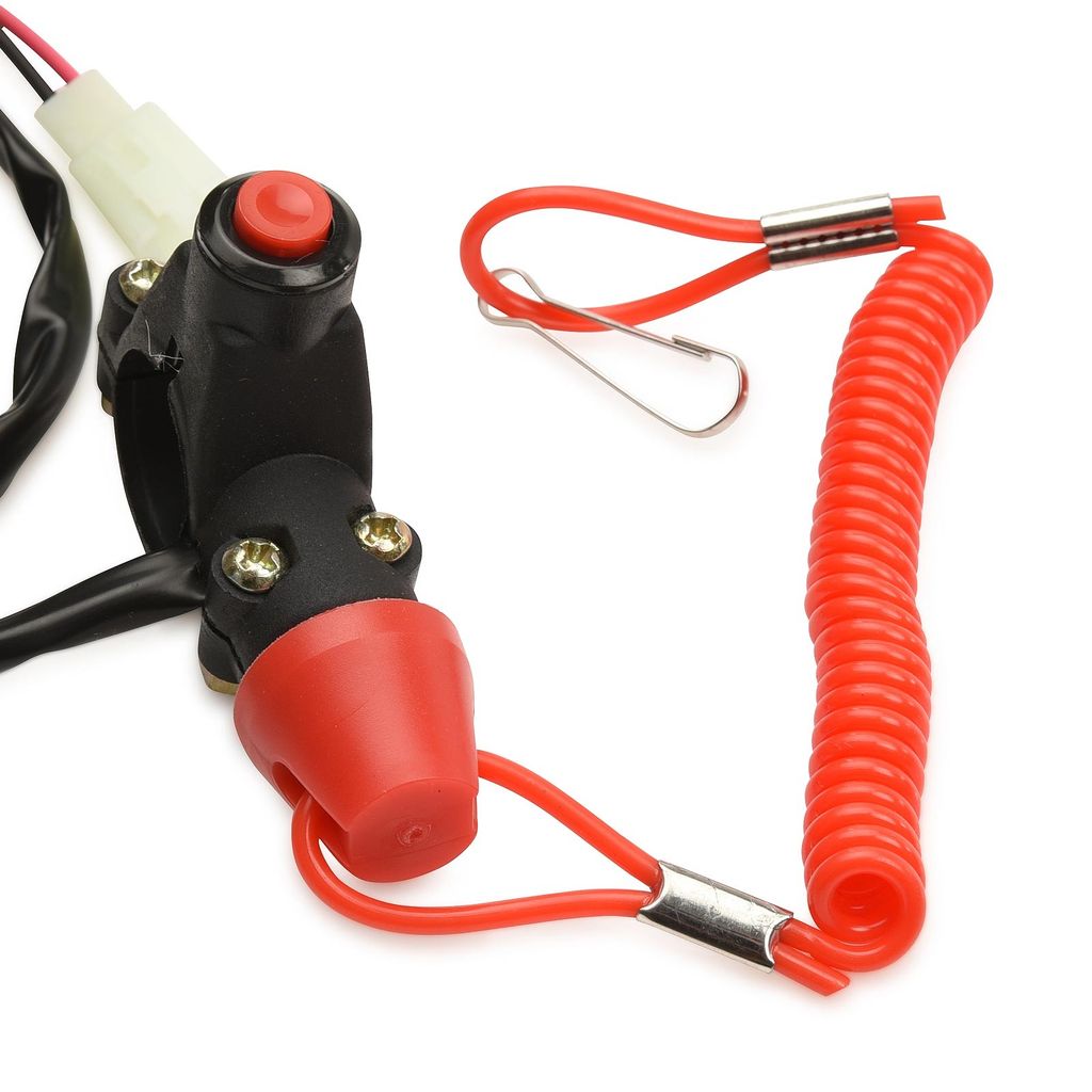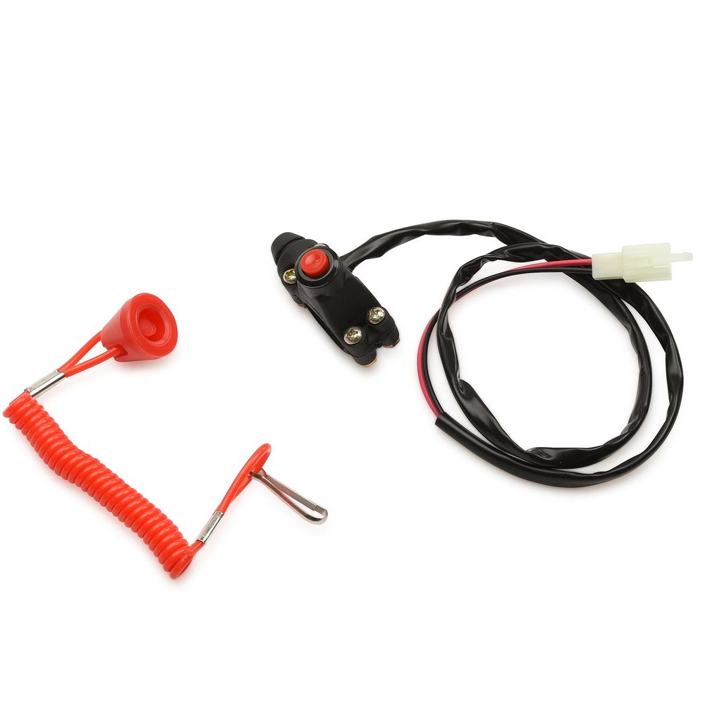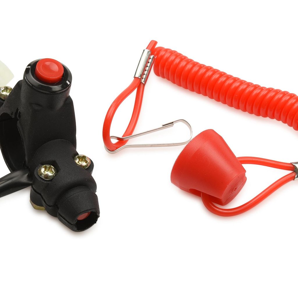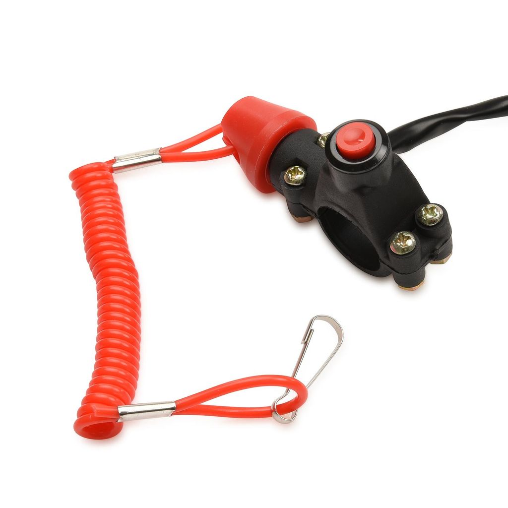 Passande standard 22mm styre. Kan användas som stoppknapp för fyrhjuling / ATV och cross / Fiddy. Reglaget består av en stoppknapp / dödare samt en dödmansgrepp leash som dödar motorn när leashen rycks bort. Lämlig för de flesta fordon och motorer 50cc, 70cc, 90cc, 110cc och 125cc samt även större.
