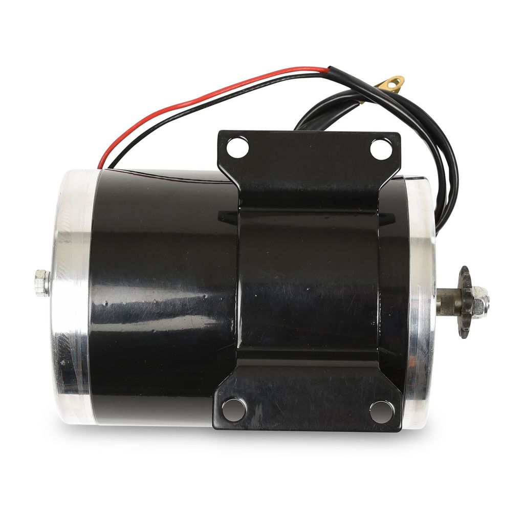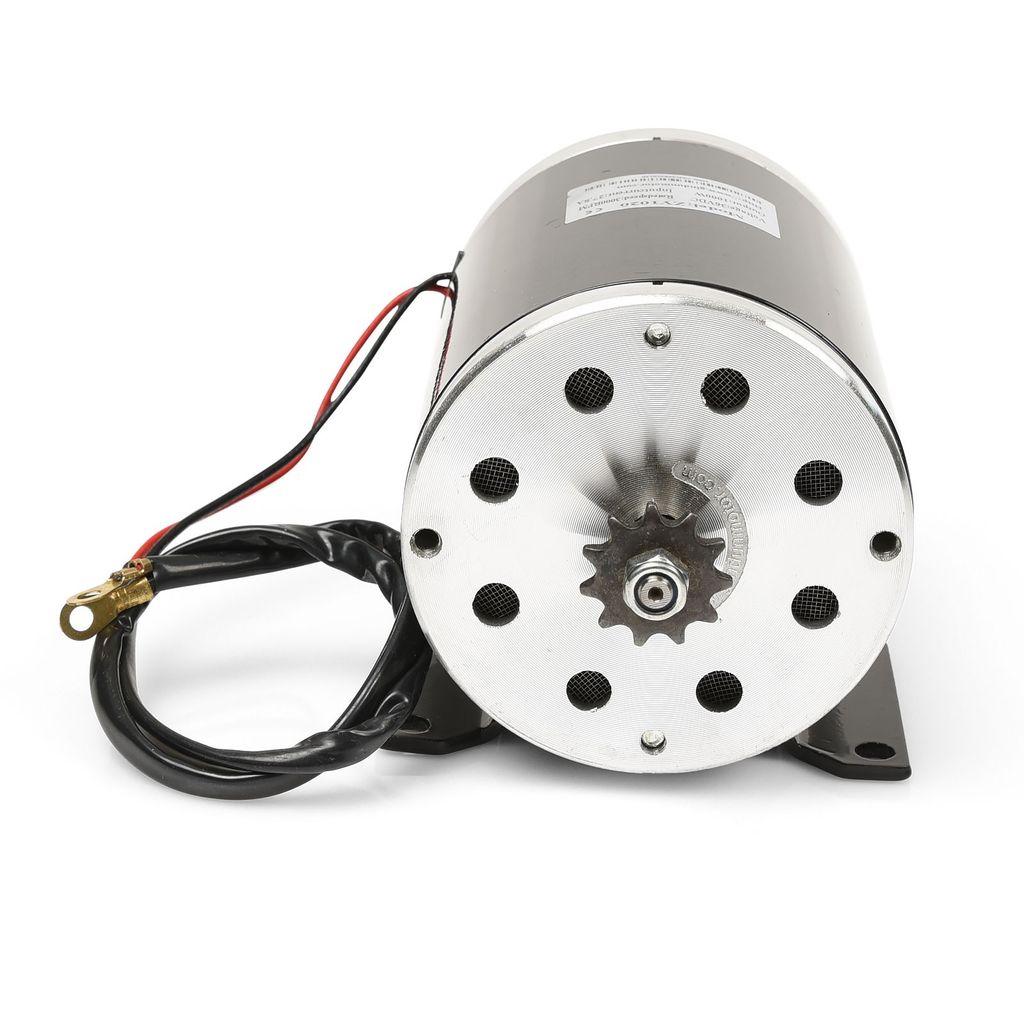Stark elmotor utav hög kvalitet som är vanlig bland många olika elfordon på marknaden som exempelvis minifyrhjuling / miniATV / elATV, elcross samt olika typer av elscooter. Motorn klarar kontinuerligt 1000 watt och betydligt mer kortvarigt. Framdrevet som sitter monterat är av typen T8F anpassat för kedjor av samma benämning (T8F). Drevet har 11 kuggar / tänder.
