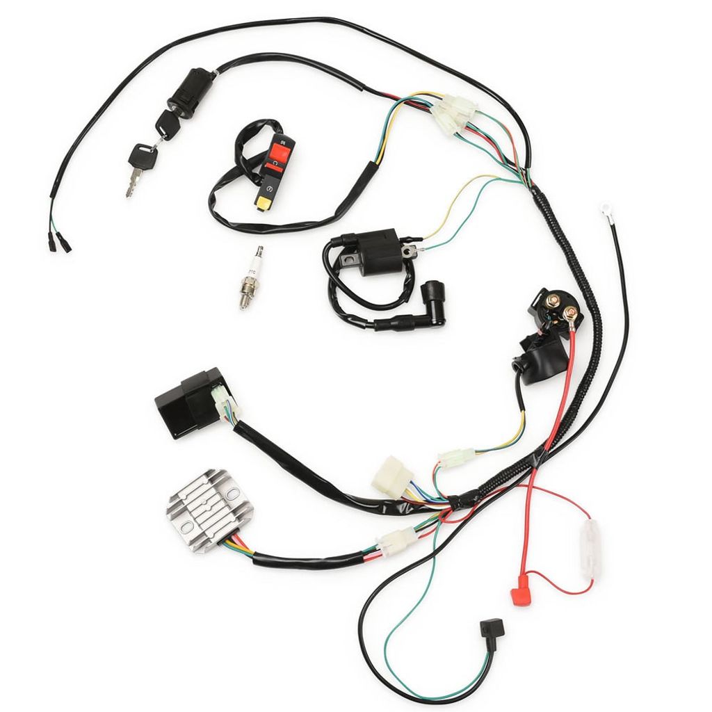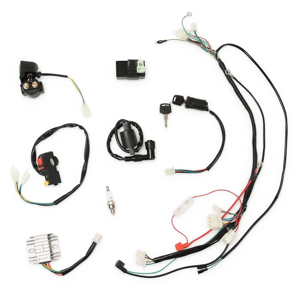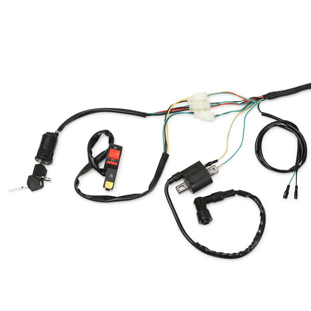 Elsystem elkit med elkomponenter och kabelstam / kabelhärva anpassat för motorer med stående cylinder med kickstart och elstart. Passande ett flertal olika modeller på marknaden av cross och Fiddy, vanligast 150cc, 200cc och 250cc.