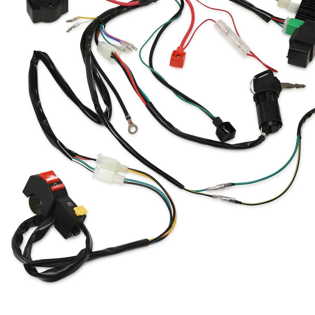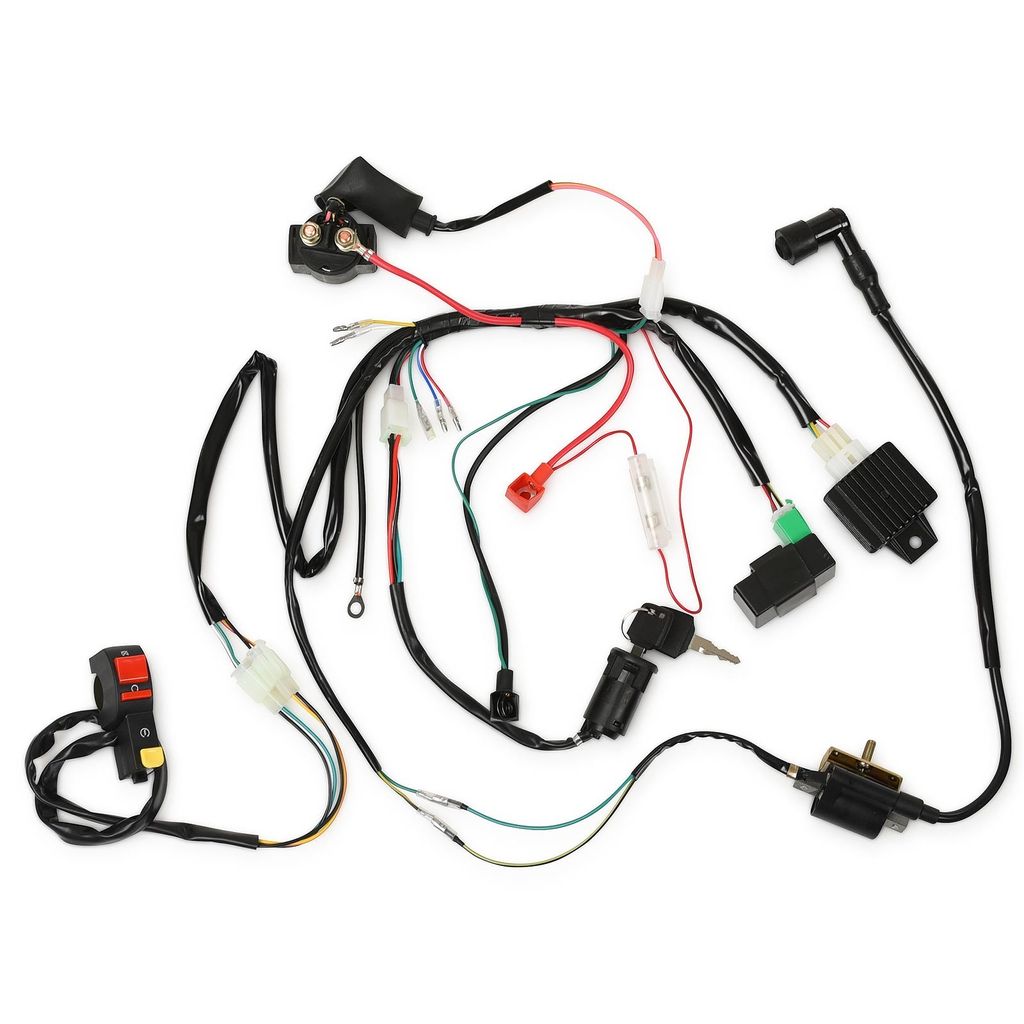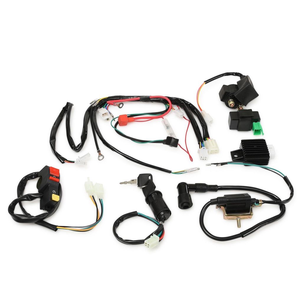 Elsystem med eldelar / elkomponenter anpassat för motorer med liggande cylinder och elstart. Samt elstart / kickstart. Främst Dirtbike Fiddy / cross men kan även passa ATV Fyrhjuling utan belysning (kablaget har ej uttag för lampor och ljusreglage). Kompatibelt med de flesta motorer 50cc, 70cc, 90cc, 110cc, 125cc och en del större motorer som använder denna typ av cdi box. (140cc, 150cc och 190cc). Kontakterna som ansluts till motorn är av typen rundhylsa.