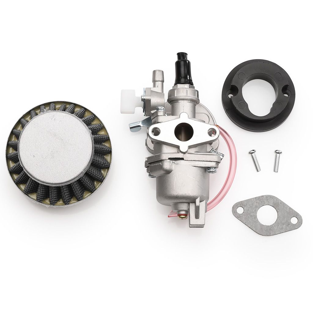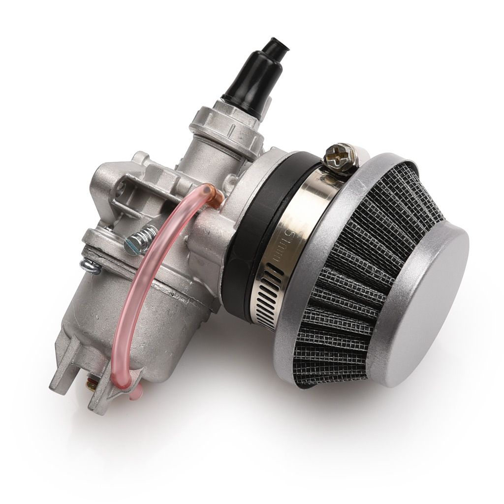Förgasare utav bra kvalitet anpassad för 2-takts motorer 39cc, 47cc och 49cc. Vanligt förekommande förgasare för miniATV / barnfyrhjuling och minicross samt minimoto. Förgasaren har inbyggd bensinkran och manuell choke. Modellen finns som 12mm och 13mm men har i övrigt samma dimensioner. Levereras med luftfilter och luftfilteradapter / luftfilterhållare samt insugspackning.