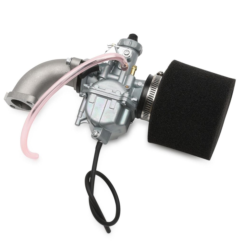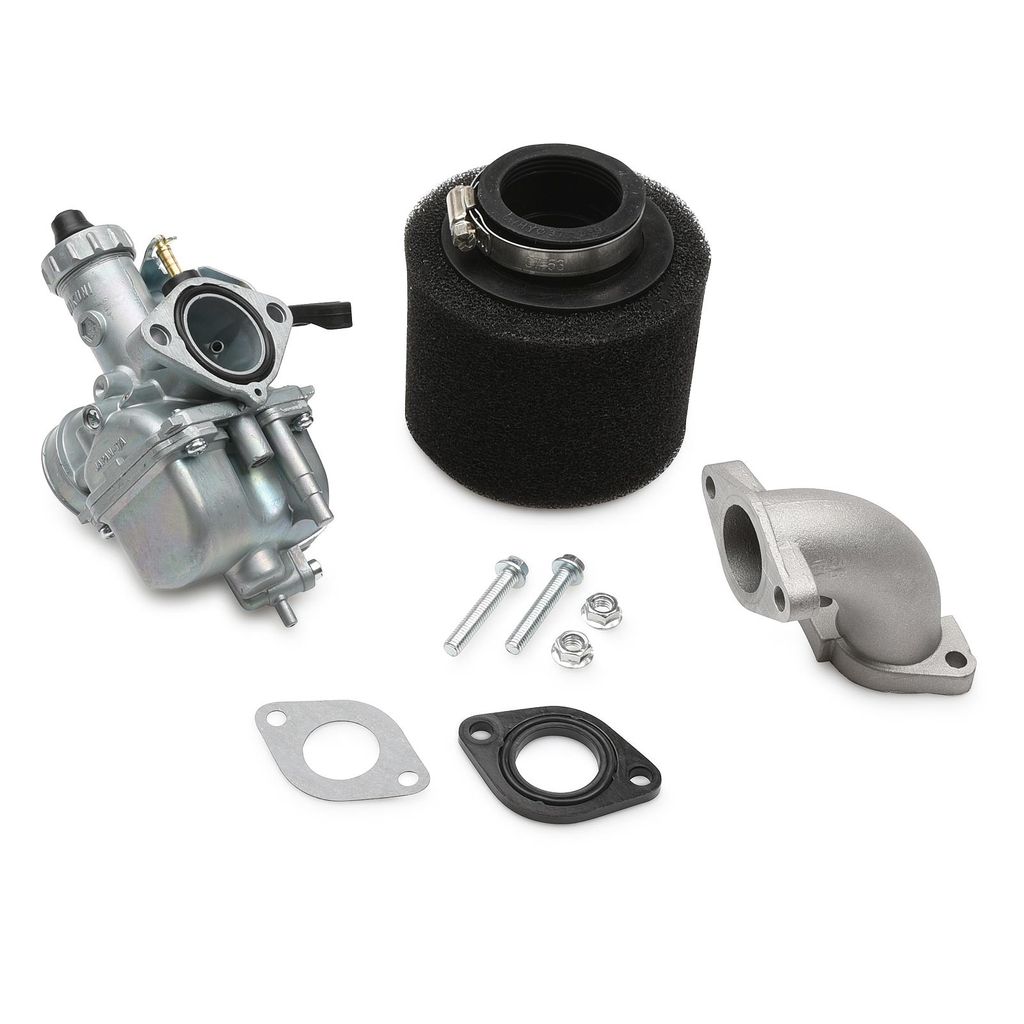 Förgasarkit Mikuni 26mm förgasare av hög kvalitet inklusive insugsrör och luftfilter. Manuell choke som höjer tomgångsvarvtalet och underlättar start. Passande de flesta motorer som Loncin, Lifan, Zongshen och YX 125cc, 140cc, 150cc och 160cc. Passar förutom cross / Fiddy även ATV fyrhjuling där man kommer åt den manuella choken. Levereras med ett skumgummifilter, insugsrör med packningar och skruvar samt en bit bränsleslang.
