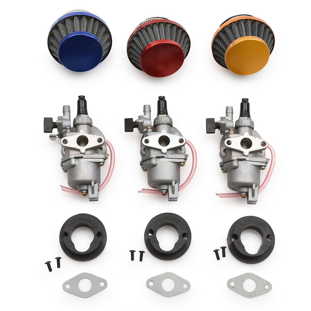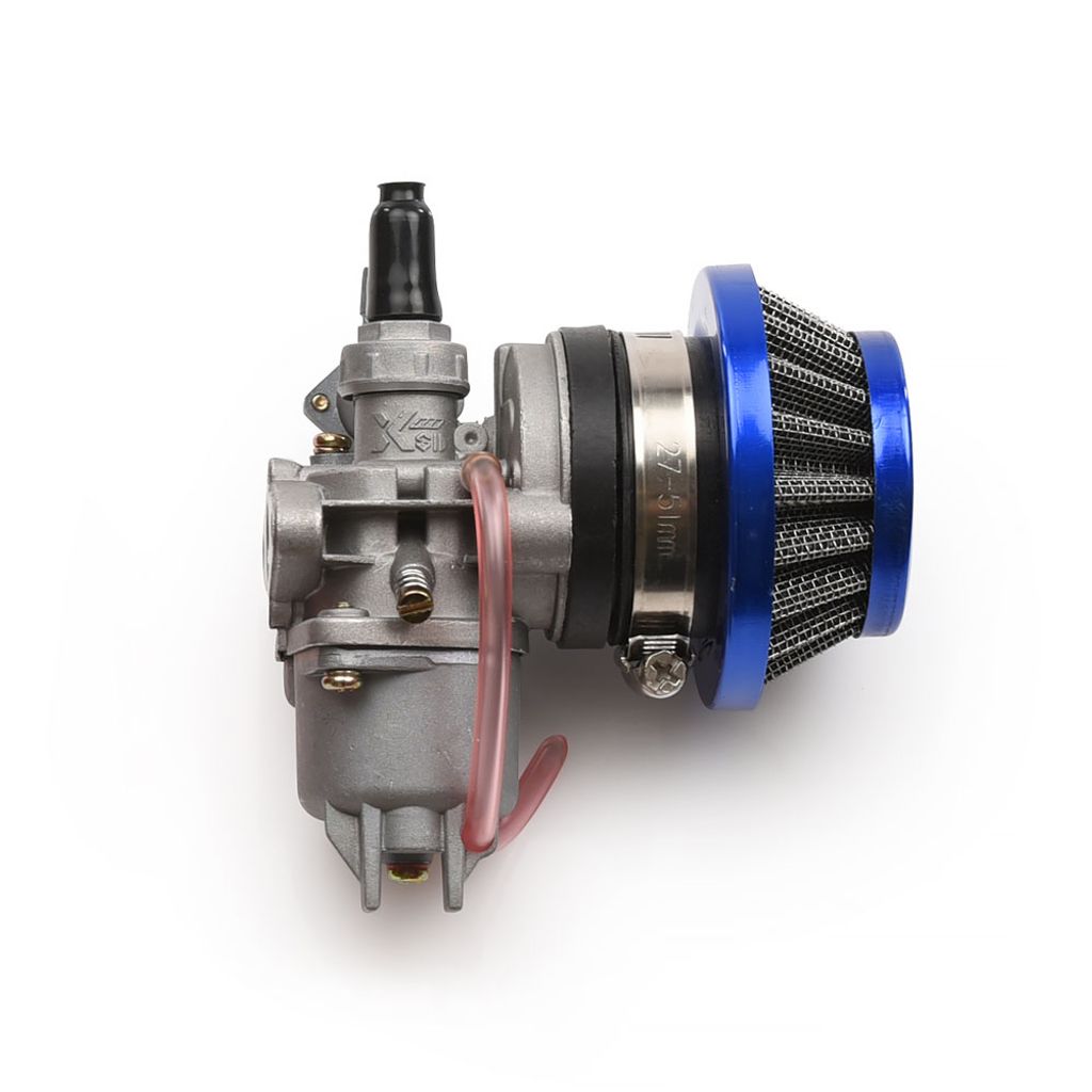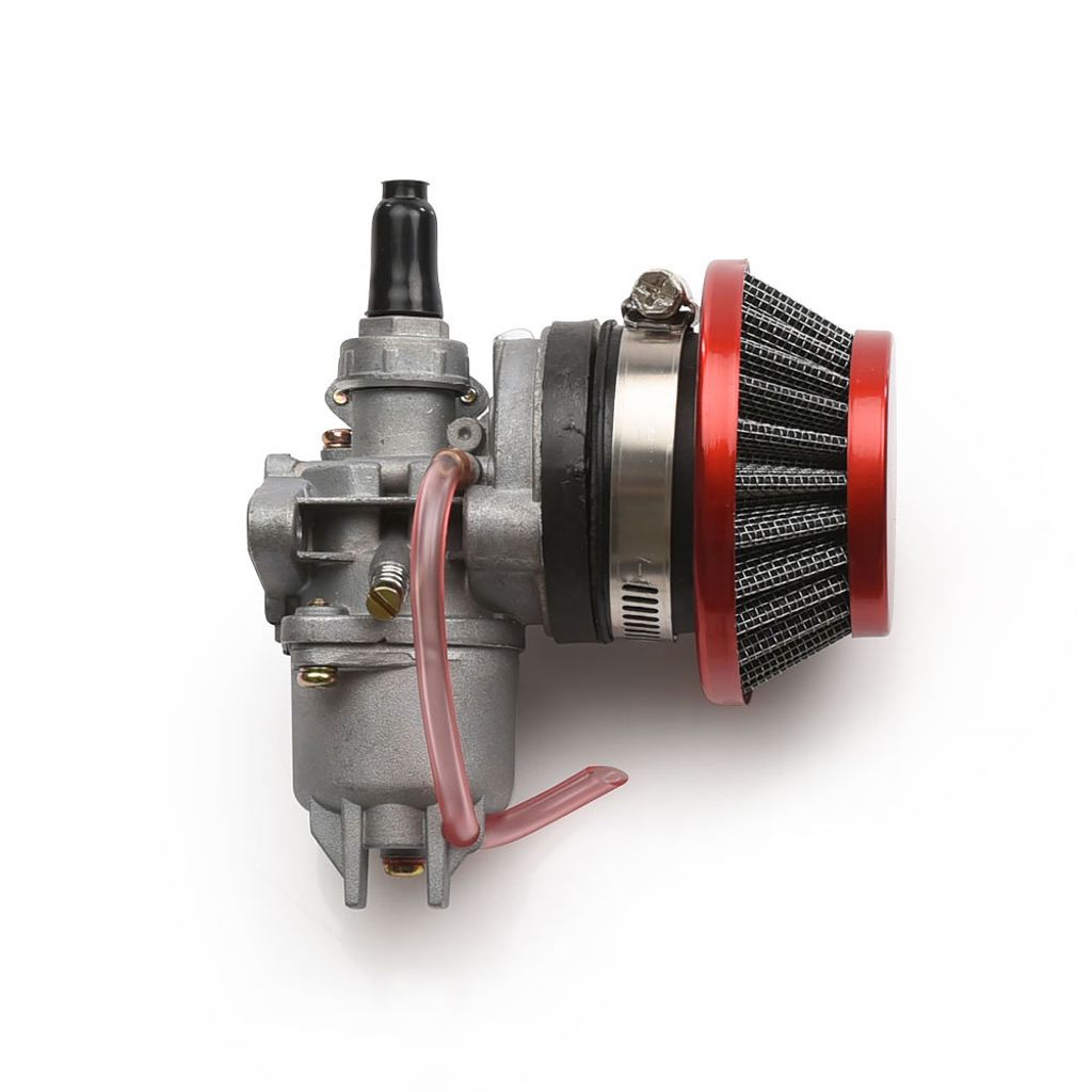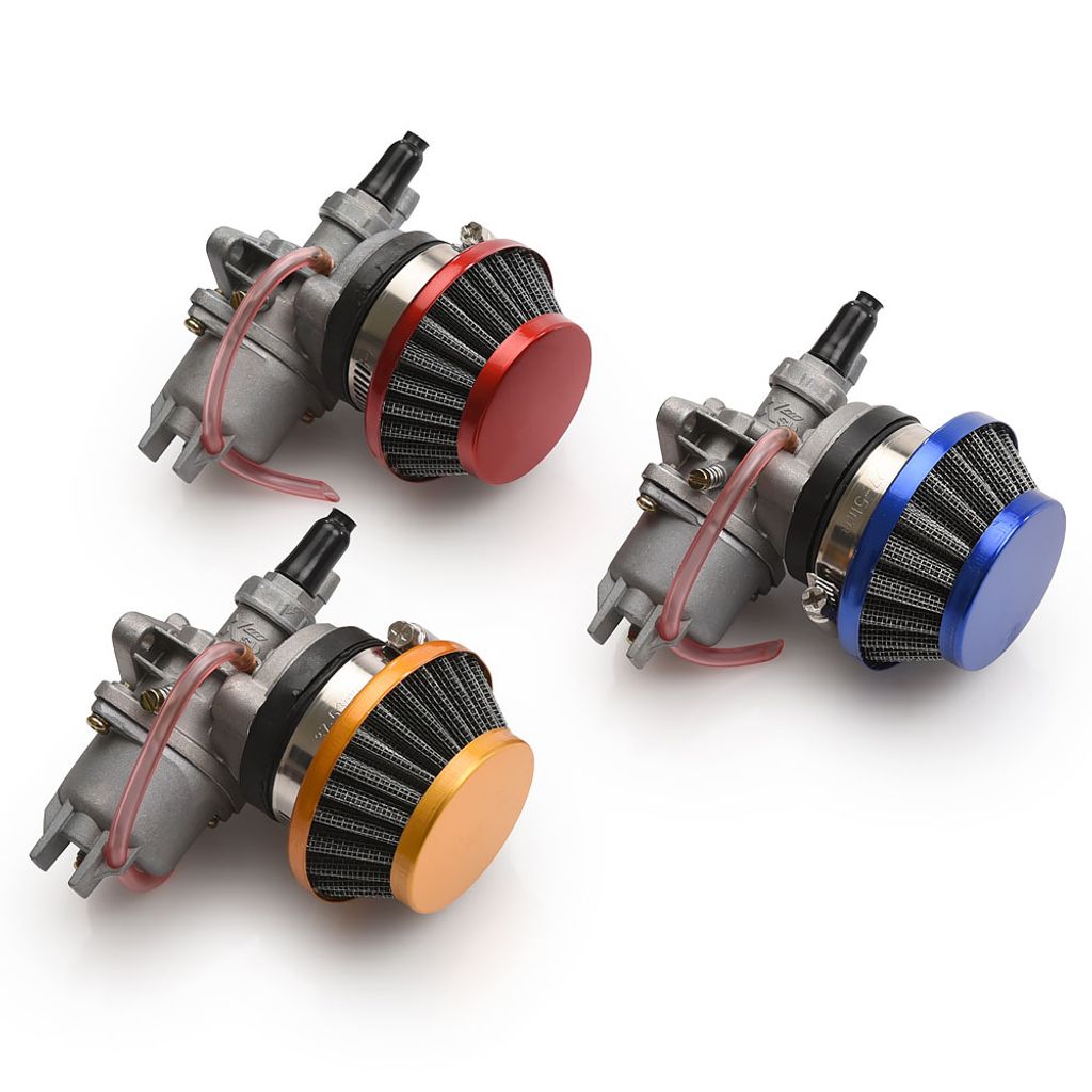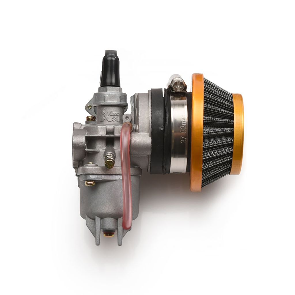 Kittet innehåller en förgasare med ett luftfilter, insugspackning (packning mellan motor och förgasare) samt en luftfilter adapter som möjliggör montering av sportluftfiltret. Välj bland olika färgalternativ. Förgasaren har en inbyggd bensinkran och en manuell choke. Förgasarens storlek är 13mm (trottel storlek ) och den är kompatibel med motorer där det tidigare suttit en som mäter 12mm.