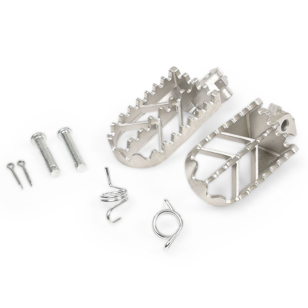 Fotpinnar i högsta kvalitet passande standard fäste. Inklusive bult och fjädrar. Passande cross och dirt bike men även mindre maskiner som Fiddy / Pitbike.
