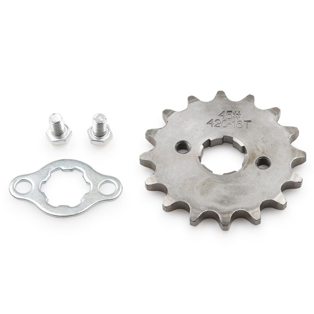 Framdrev utav hög kvalitet. Passande motoraxel 20mm som förekommer på motorer med stående cylinder 125cc, 150cc, 200cc och 250cc. Inklusive drevlås / fästplatta med bultar. Kontrollera alltid måtten på ditt gamla drev innan beställning.