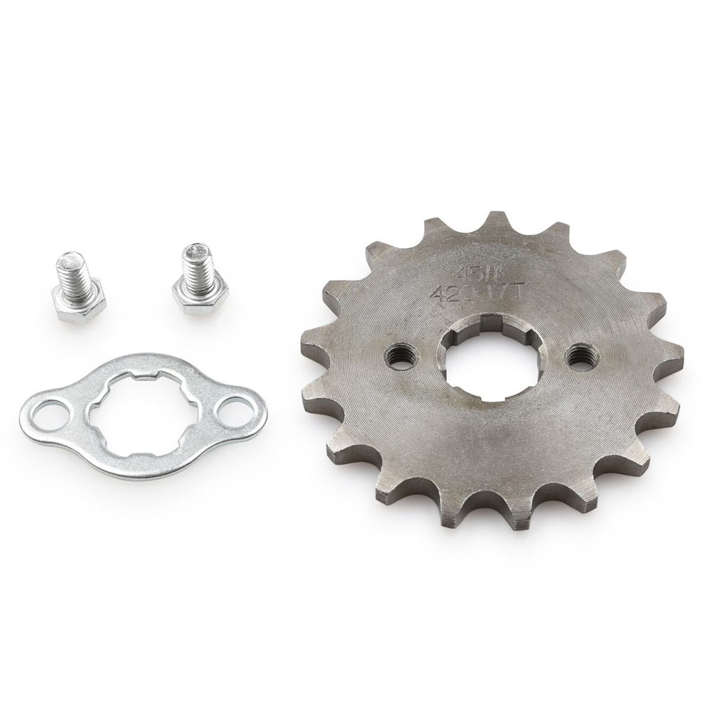 Framdrev utav hög kvalitet. Passande motoraxel 20mm som förekommer på motorer med stående cylinder 125cc, 150cc, 200cc och 250cc. Inklusive drevlås / fästplatta med bultar. Kontrollera alltid måtten på ditt gamla drev innan beställning.
