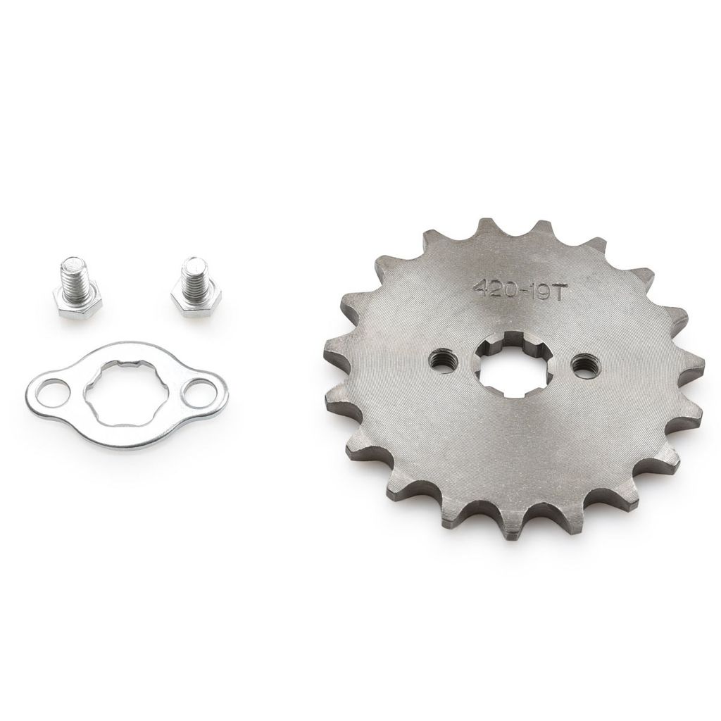 Framdrev utav hög kvalitet. Passande motoraxel 17mm. Anpassat för motorer med liggande cylinder exempelvis Lifan, Loncin, YX 50cc, 70cc, 90cc, 125cc samt även 140cc till 160cc där man vill använda den något smalare kedjestandarden 420. Ett större framdrev ger högre toppfart men lägre styrka. Levereras inklusive drevlås / fästplatta med bultar. Kontrollera alltid måtten på ditt gamla drev och kedja innan beställning.