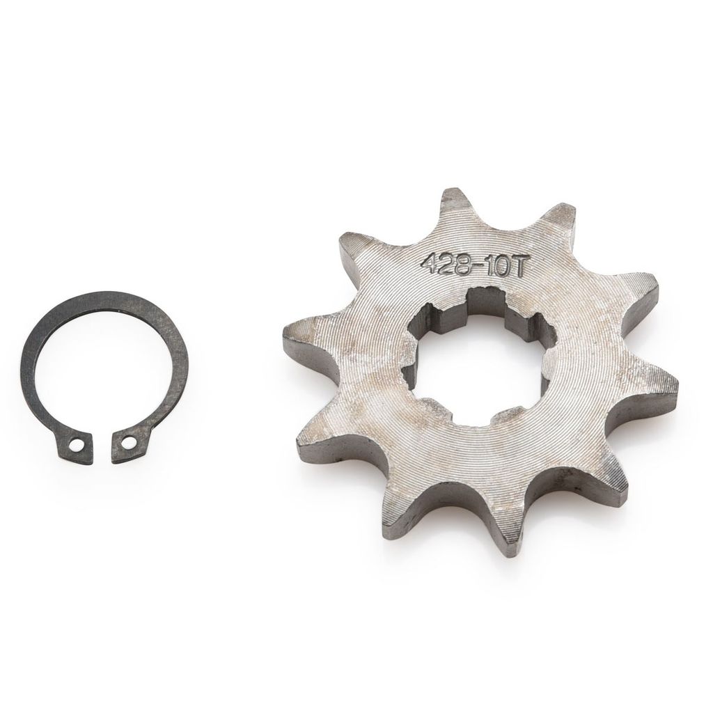 Framdrev utav hög kvalitet. Passande motoraxel 17mm. Anpassat för motorer med liggande cylinder exempelvis Lifan, Loncin, YX 70cc, 90cc 125cc samt även 140cc till 160cc. Med ett så pass litet framdrev som 10 kuggar / tänder är det viktigt att kontrollera så att kedjan inte kommer att gå emot svingen. Eftersom drevet är mindre i diameter levereras det med en låsbricka istället för drevlåsning med bultar. Kontrollera alltid måtten på ditt gamla drev och kedja innan beställning.