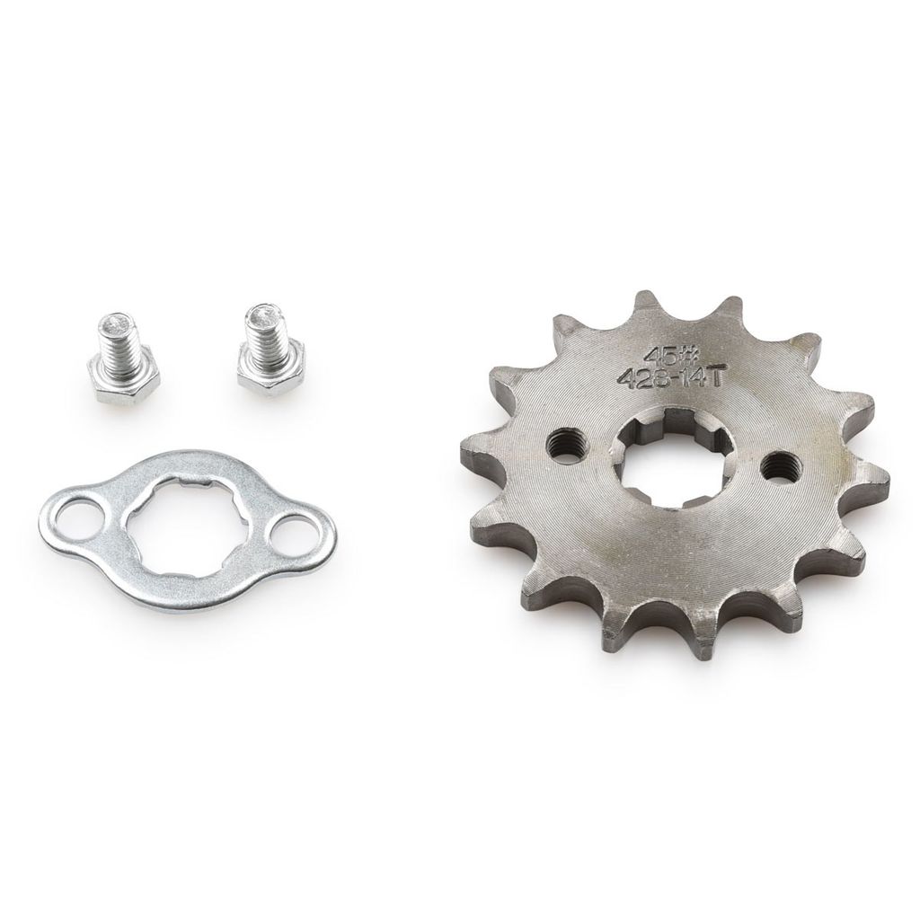 Framdrev utav hög kvalitet. Passande motoraxel 17mm. Anpassat för motorer med liggande cylinder exempelvis Lifan, Loncin, YX 70cc, 90cc 125cc samt även 140cc till 160cc. Med ett mindre framdrev får maskinen mer styrka men lägre toppfart. Levereras inklusive drevlås / fästplatta med bultar. Kontrollera alltid måtten på ditt gamla drev och kedja innan beställning.