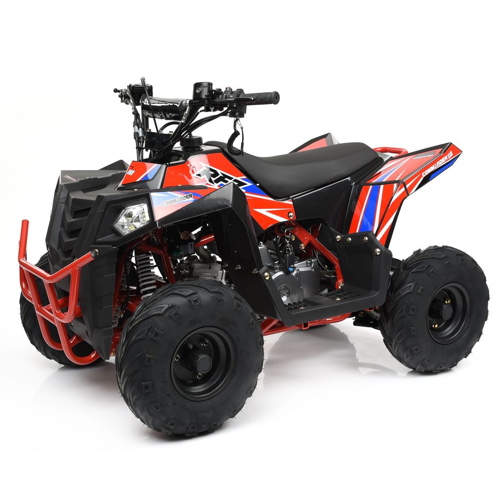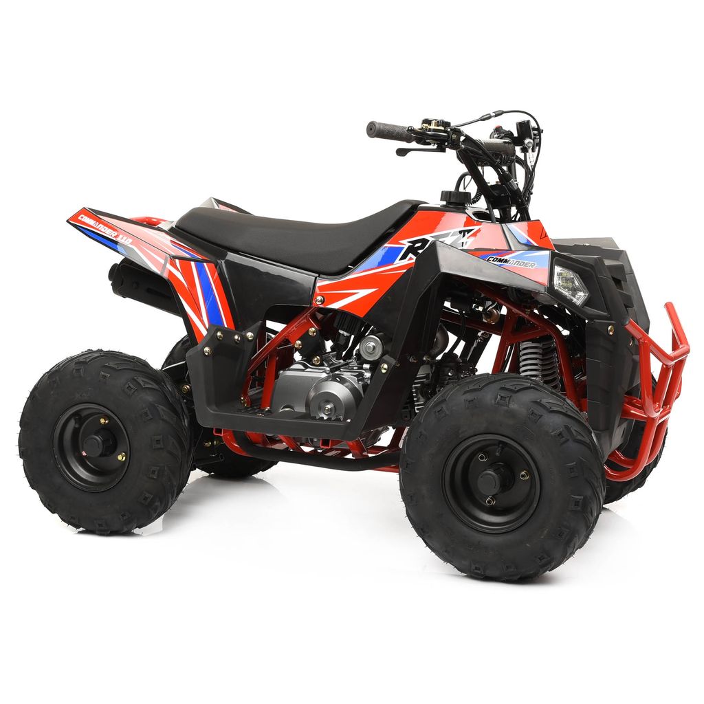 Commander 110 med backfunktion är en välkonstruerad och rolig barnfyrhjuling som trots den större motorn är lika tyst och lättkörd som en 70cc eller 90cc motor då effektskillnaden är ganska liten. Konstruktionen är kraftig med stark ram och sving samt stötdämpare av hög kvalitet. Modellen är lämplig för barn från 5-6 år tack vare att bromshandtagen är anpassade för mindre händer. Den stabila plastkarossen och komfortabla sadeln bidrar till hög kvalitetskänsla. Fyrhjulingen är utrustad med 6 tums däck med off-road mönster som ger bra grepp på gräs och lösare underlag.