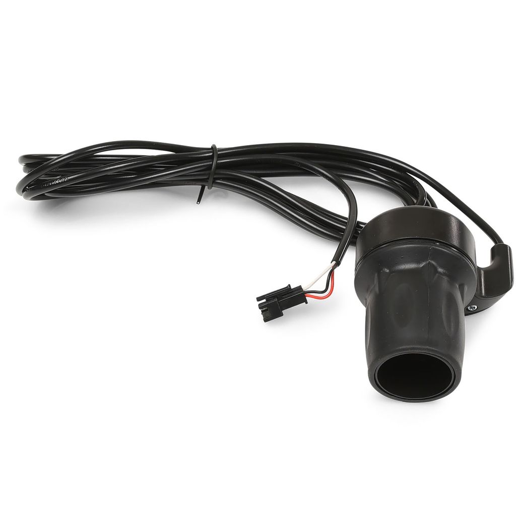 Gashandtag med rullgashandtag (halvt handtag). Passande en rad olika modeller av elcyklar och lådcyklar som har tre kablar till gashandtaget. Anpassat för standard 22mm styre. Kabelns längd: 2400mm