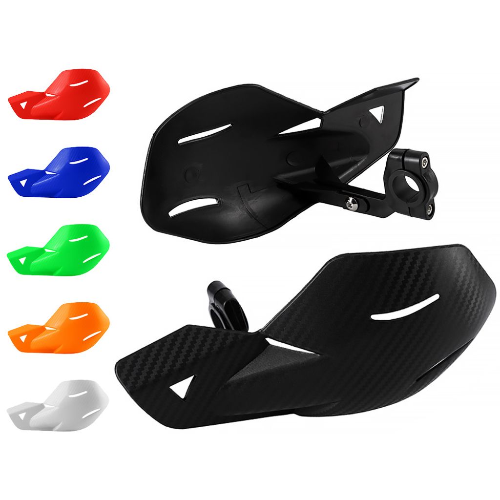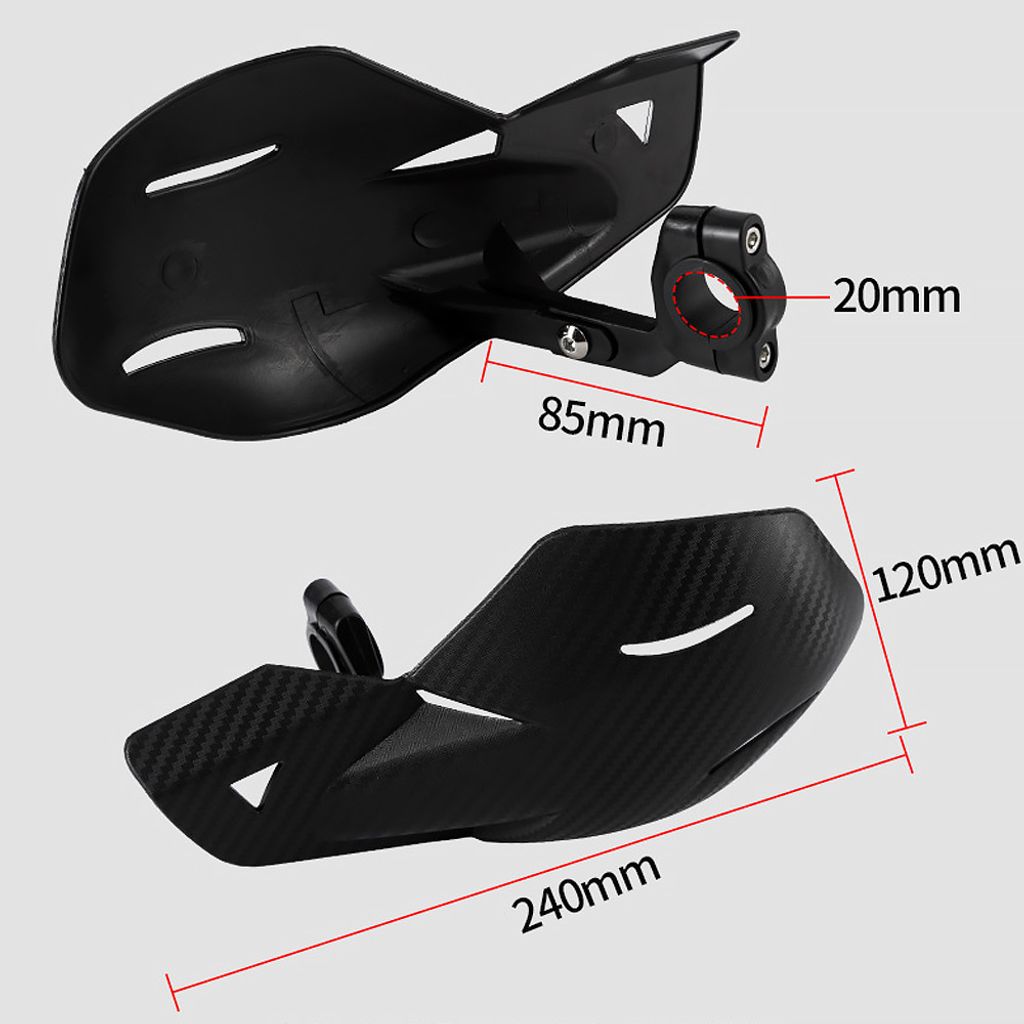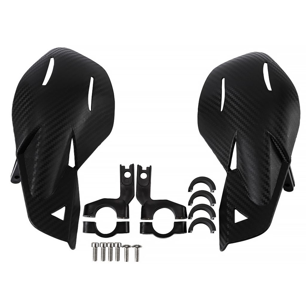 Tillverkade av högkvalitativt och lätt men robust plastmaterial med en snygg kolfiber-look på samtliga färger, erbjuder de både skydd och stil. Den universella monteringsdesignen gör dem enkla att installera på de flesta motorcykelstyren med en diameter på 22 mm.