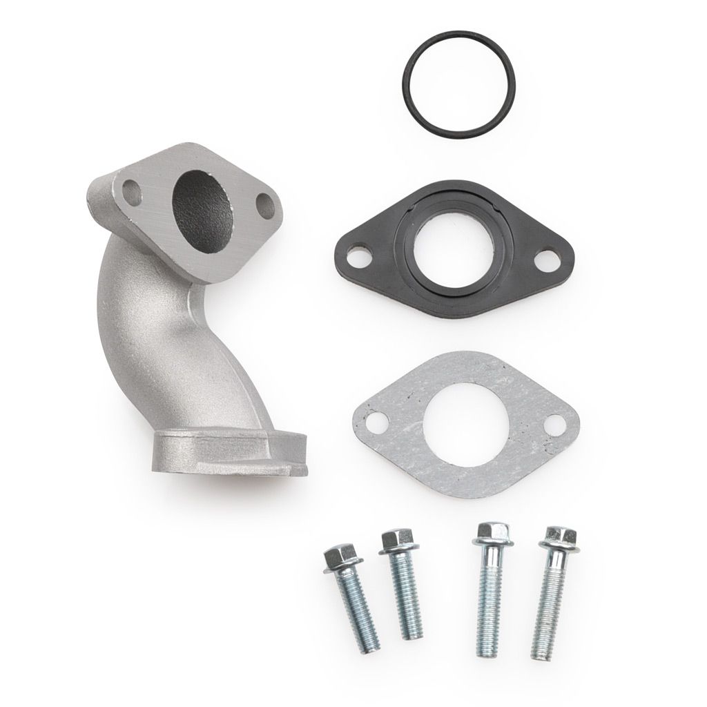 Insugsrör anpassat för 4-takts motor med liggande cylinder. Svängd modell även kallad svanhals vilket medför att förgasaren hamnar längre fram om det exempelvis är trångt mellan insugsrör och startmotor. Lämpligt insug till motorer som Lifan och Loncin med en kubik på 50cc, 70cc, 90cc och 110cc. Levereras med två packningar och bultar.