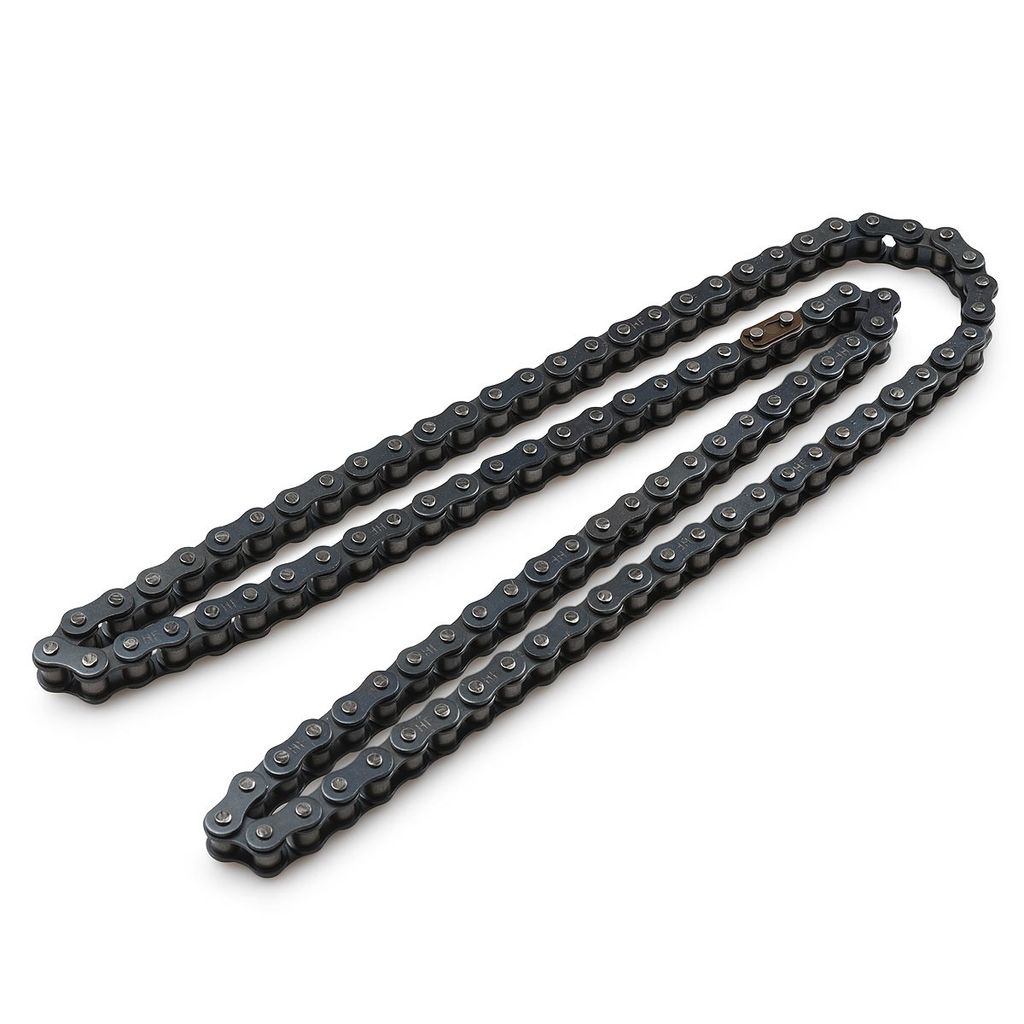 En universal kedja som kan användas till många olika applikationer och modeller utav Cross / Dirtbike samt fyrhjuling / ATV. Oftast används denna något grövre / bredare typen av kedja till större maskiner på 125cc, 150cc och 250cc men kan även förekomma på barnfyrhjuling 90cc och 110cc. Kontrollera alltid vilket typ av kedja du har innan beställning. När man pratar om standard eller typ på kedjan menar man ofta vilken tjocklek / bredd det är på kedjan. Antal länkar även kallade rullar beskriver hur lång kejan är. Det går enkelt att räkna antal rullar. En för lång kedja går alltid att korta ner med ett kedjeverktyg / kedjekapare.