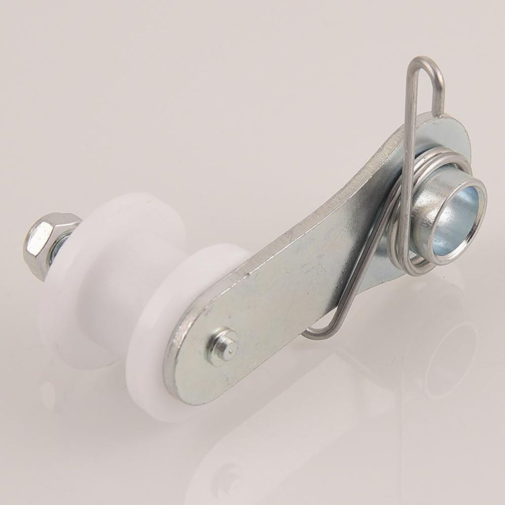 Prisvärd kedjespännare med en kedjerulle i plast och fjäder.