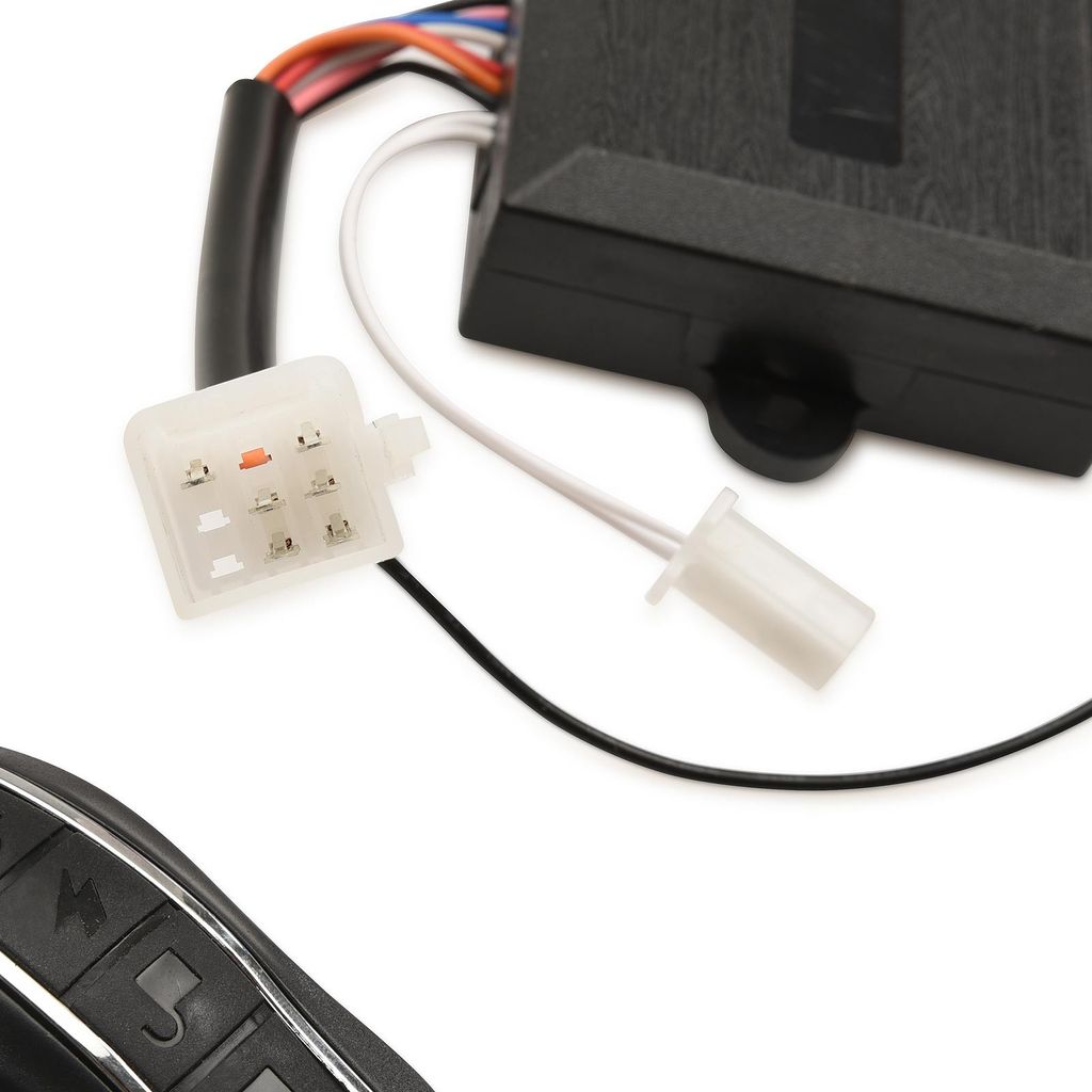 Larm / Fjärrkontrollsenhet med fjärrkontroll. Enheten kan användas till ATV fyrhjuling samt motorcyklar som har uttag för fjärrkontroll på huvudkablaget. Funktionen är främst fjärravstängning av motorn vilket kan vara praktiskt om en nybörjare kör och man behöver stänga av motorn. Larmfunktionen kan användas när maskinen står stilla och aktiveras vid rörelse.