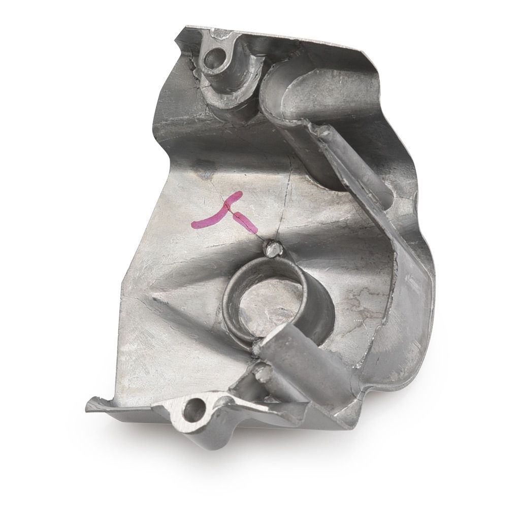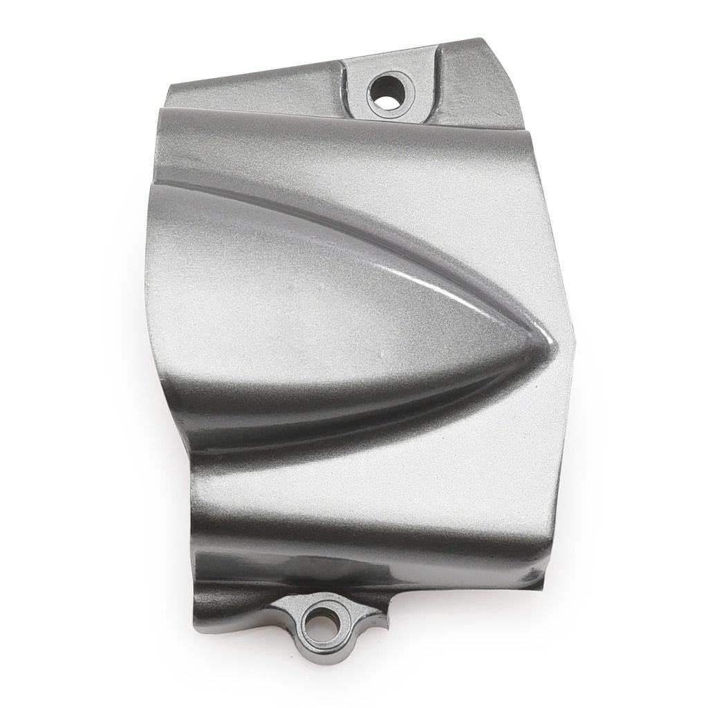 Vänster motorkåpa, bakre delen som täcker framdrevet. Tillverkad i aluminium med grå metallic finish. Passar 4-takts motorer med liggande cylinder och elstart 50cc till 125cc Kompatibel med motortillverkare som Loncin, Lifan YX med flera.