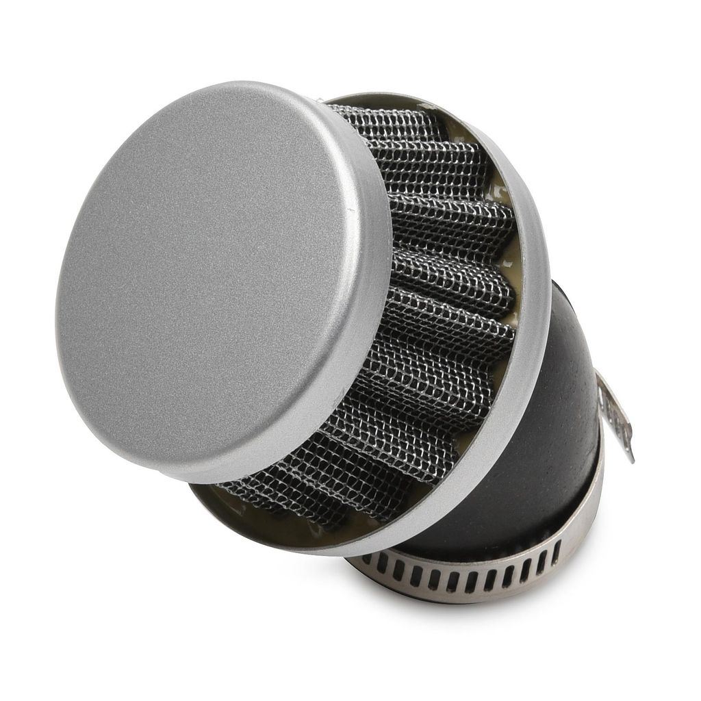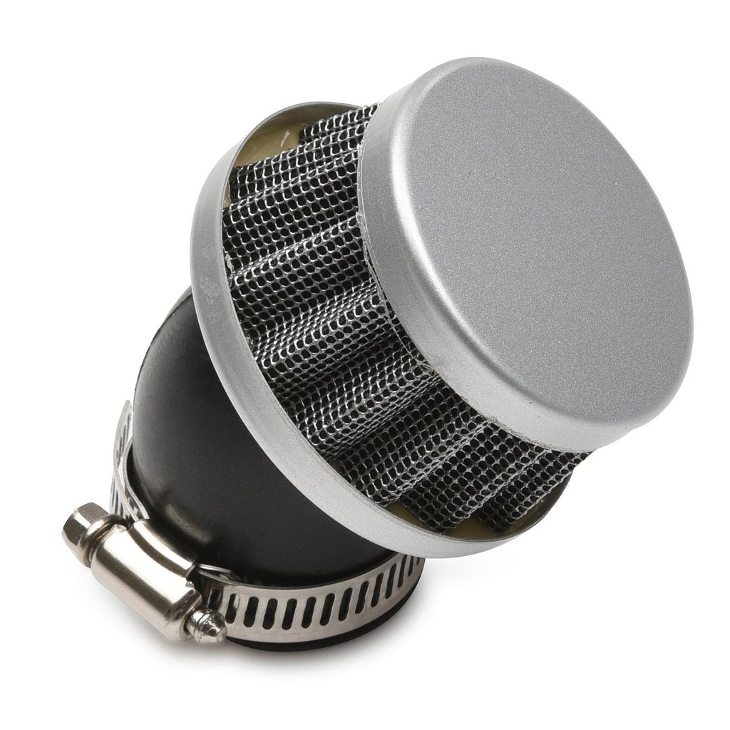 Luftfilter av mindre modell och vinklad anslutning. Passande en mängd olika modeller 50cc, 70cc, 90cc, 110cc samt vissa 125cc. Främst 4-takt men även vissa mindre 2-takt. Kan använas till förgasare med en luftfilteranslutning på mellan 33mm och 37mm, vanligast på PZ19 eller 20mm förgasare förekommande på Dirtbike, Fiddy samt ATV Fyrhjuling.