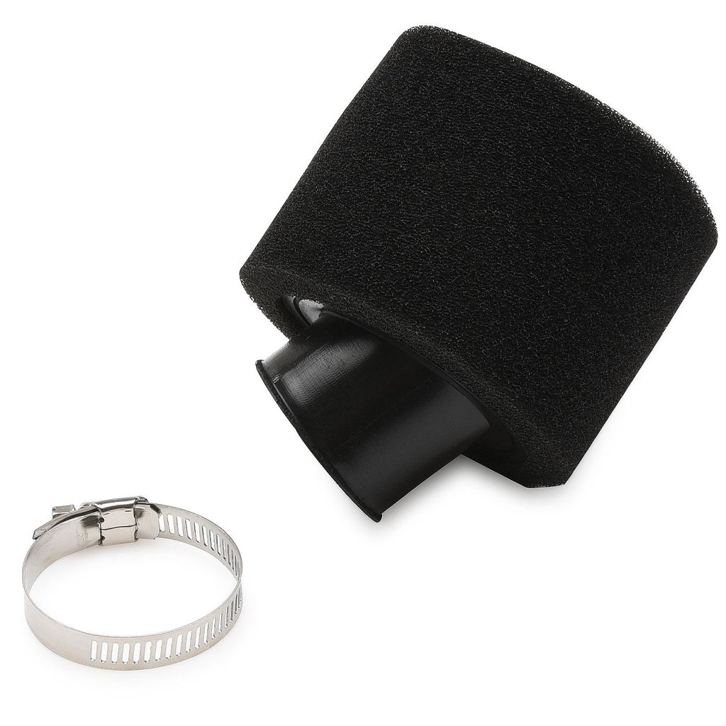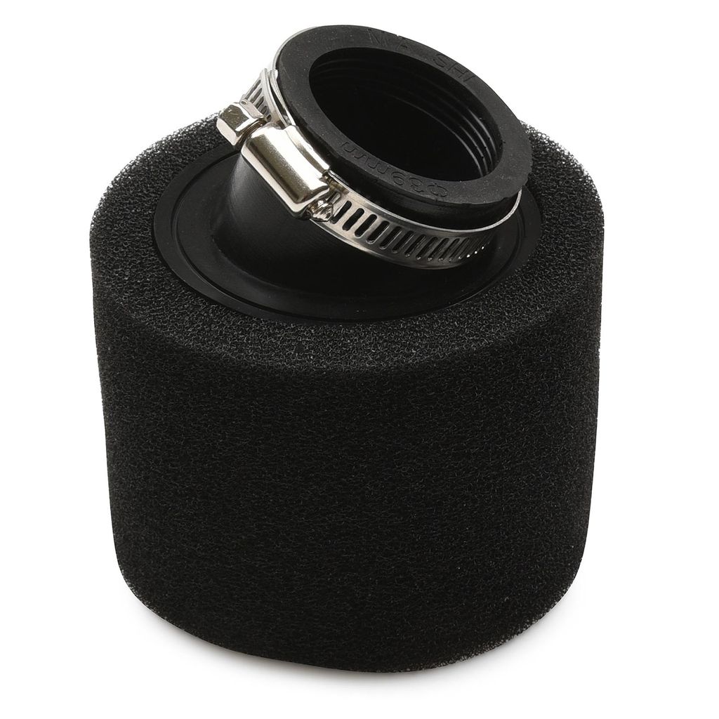 Luftfilter utav hög kvalitet med en mjuk och hållbar gummianslutning till förgasare. Vinklad anslutning. Skumgummi filter säkerställer optimal rening och flöde. Det yttre lagret kan enkelt avlägsnas för rengöring. Passande en mängd olika modeller från 50cc, 70cc, 90cc, 110cc, 125cc, 140cc och 150cc / 200cc.