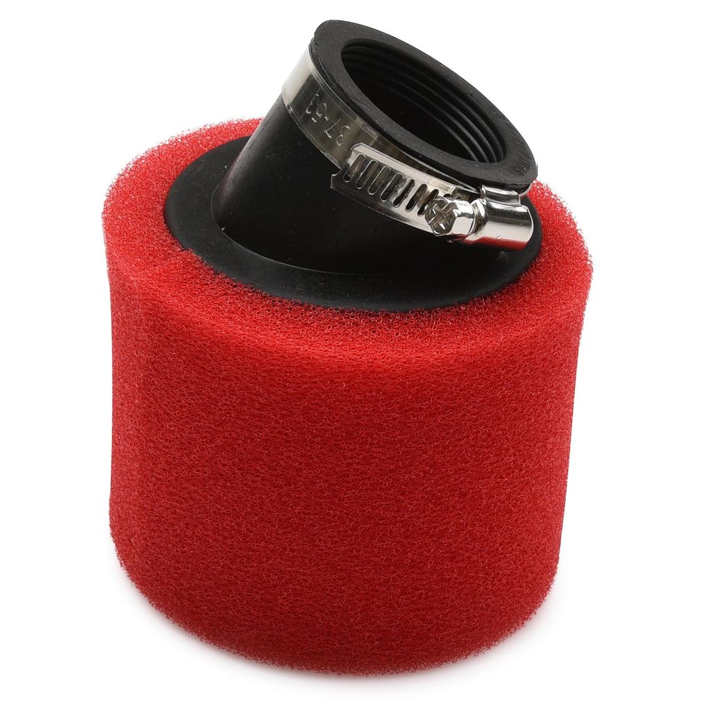 Luftfilter utav hög kvalitet med en mjuk och hållbar gummianslutning till förgasare. Vinklad anslutning. Skumgummi filter säkerställer optimal rening och flöde. Det yttre lagret kan enkelt avlägsnas för rengöring. Passande en mängd olika modeller från 50cc, 70cc, 90cc, 110cc, 125cc, 140cc och 150cc.