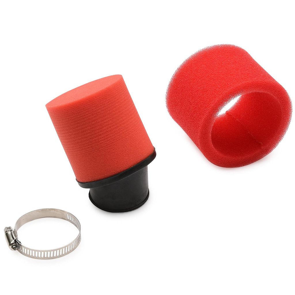 Luftfilter utav hög kvalitet med en mjuk och hållbar gummianslutning till förgasare. Vinklad anslutning. Skumgummi filter säkerställer optimal rening och flöde. Det yttre lagret kan enkelt avlägsnas för rengöring. Passande en mängd olika modeller 125cc, 140cc, 150cc, 200cc och 250cc.