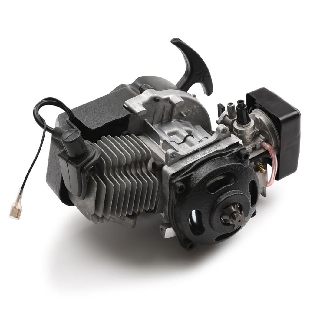 Komplett motor inkl. förgasare, luftfilter, dragstart av typen Easy Pullstart vilket underlättar starten väsentligt. Direktkopplat kopplingshus med ett framtrev som har 6 Tänder / kuggar. (T8F standard).