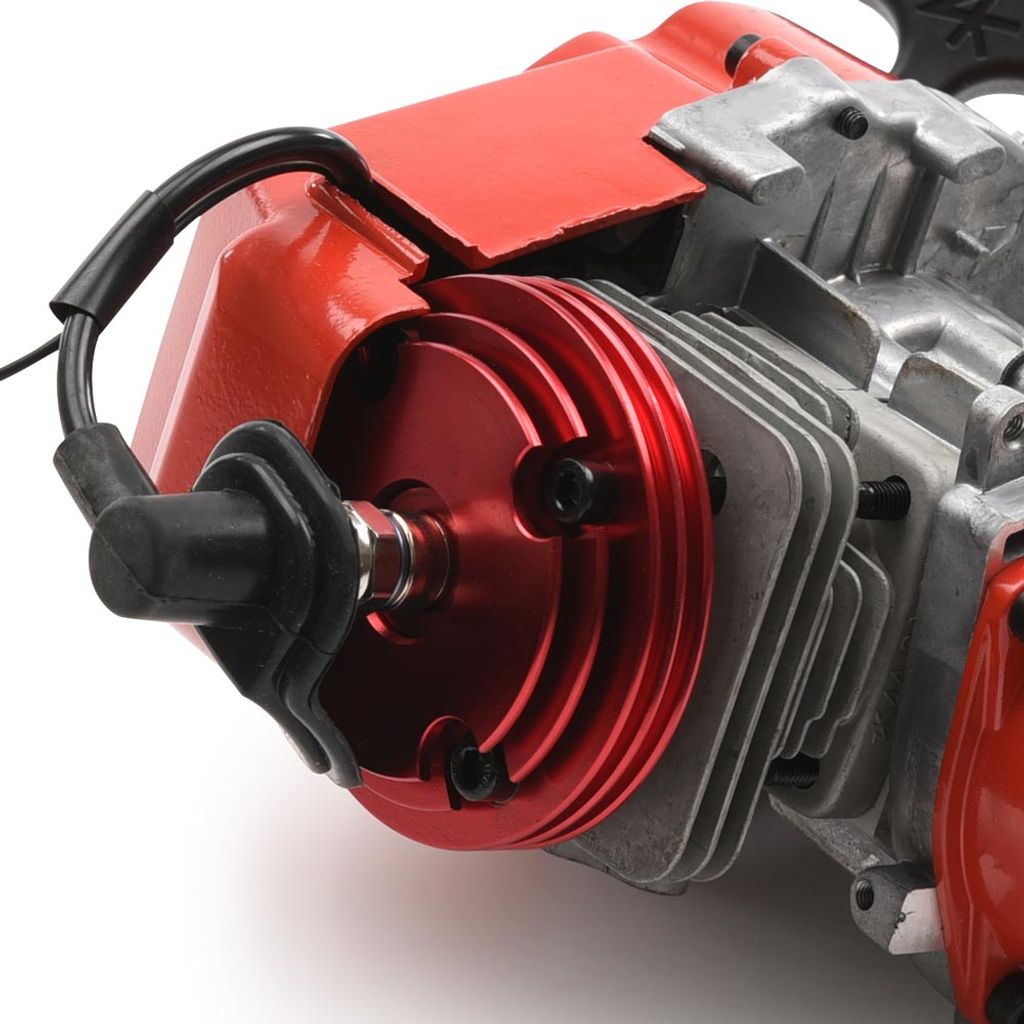 Trimmotor med 44mm kolv och en högpresterande förgasare. Direktkopplat kopplingshus med ett drev som har 6 tänder / kugg av den minsta typen (25H standard). Motorn passar bl.a minimoto och vissa miniATV som har ett stort bakdrev med den minsta typen av kedjestandard som kallas 25H.
