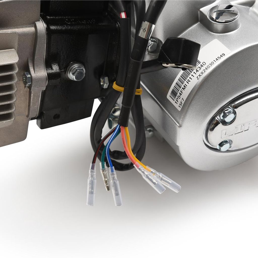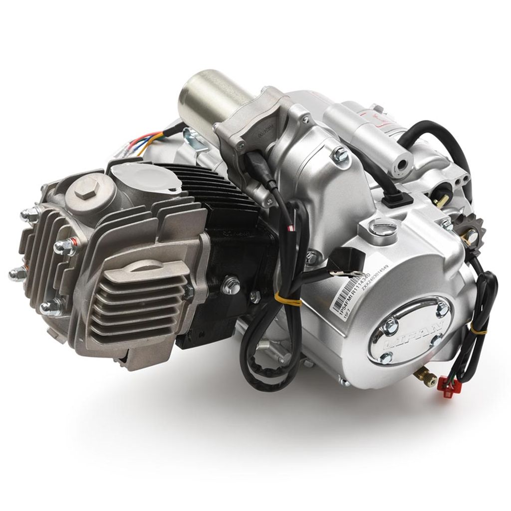 Motor med hög kvalitet och finish från välkända Lifan. Motorn är 4-takt, 125cc och halvautomat / semiautomat med backväxel. 12 volts elsystem med elstart. Med halvautomatisk växellåda blir motorn enkel att manövrera, bara att gasa och bromsa. Det finns inget kopplingshandtag och det är bara att trycka i nästa växel om man vill köra fortare.