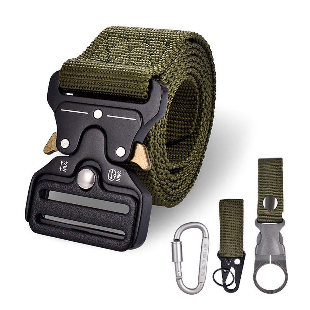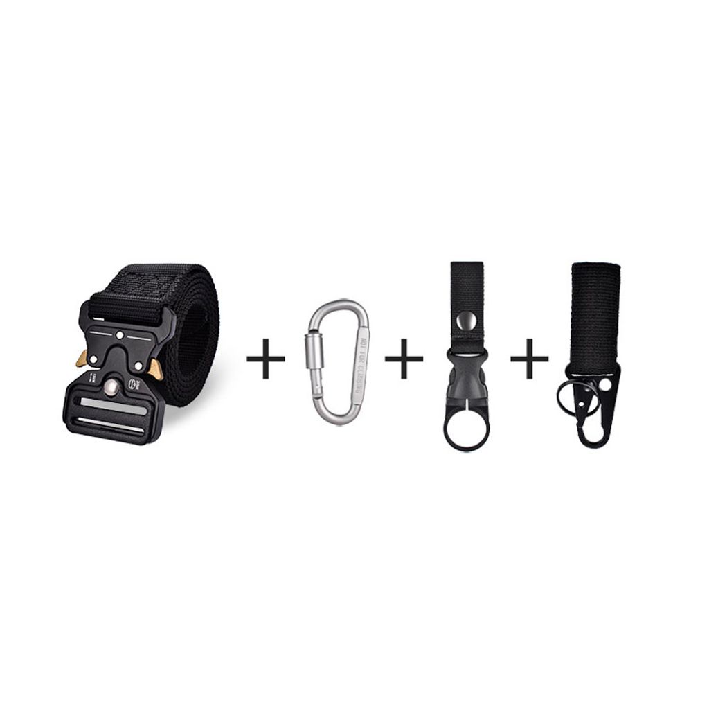 Detta taktiska bälte för män är tillverkat av slitstarkt nylonmaterial som kombinerar hållbarhet med komfort. Bältet är designat för att klara av tuffa förhållanden och är idealiskt för friluftsliv, militärbruk, vandring och vardagliga aktiviteter. Med en säker snabbspänne i metall och flera praktiska tillbehör erbjuder detta bälte både stil och funktionalitet. Tillbehören inkluderar en karbinhake, en nyckelhållare och en flaskhållare, vilket gör det enkelt att organisera dina nödvändigheter och hålla flaskan tillgänglig under dina aktiviteter.