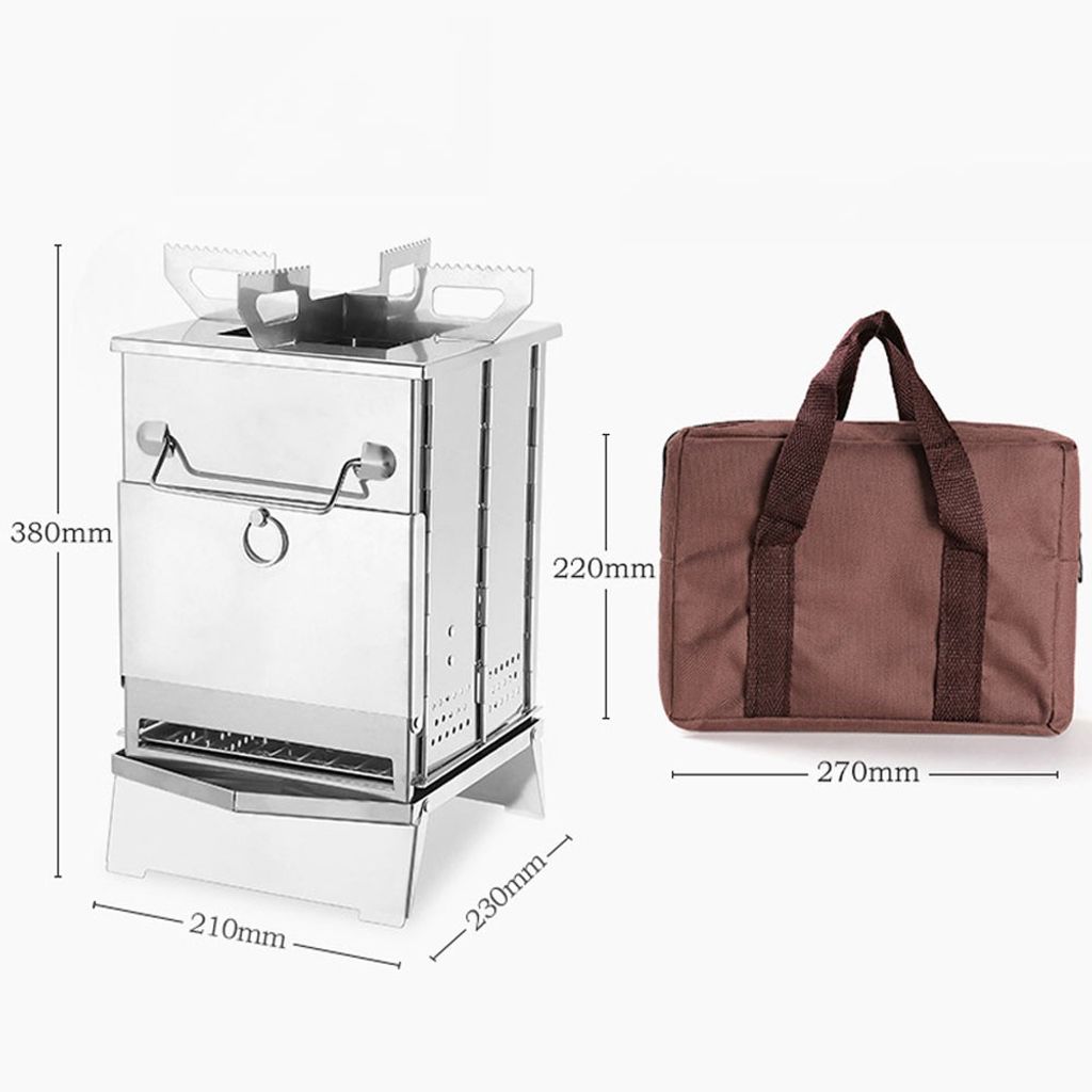 Hopfällbar portabel vedspis, kamin i rostfritt stål, Stor 210*230*380mm