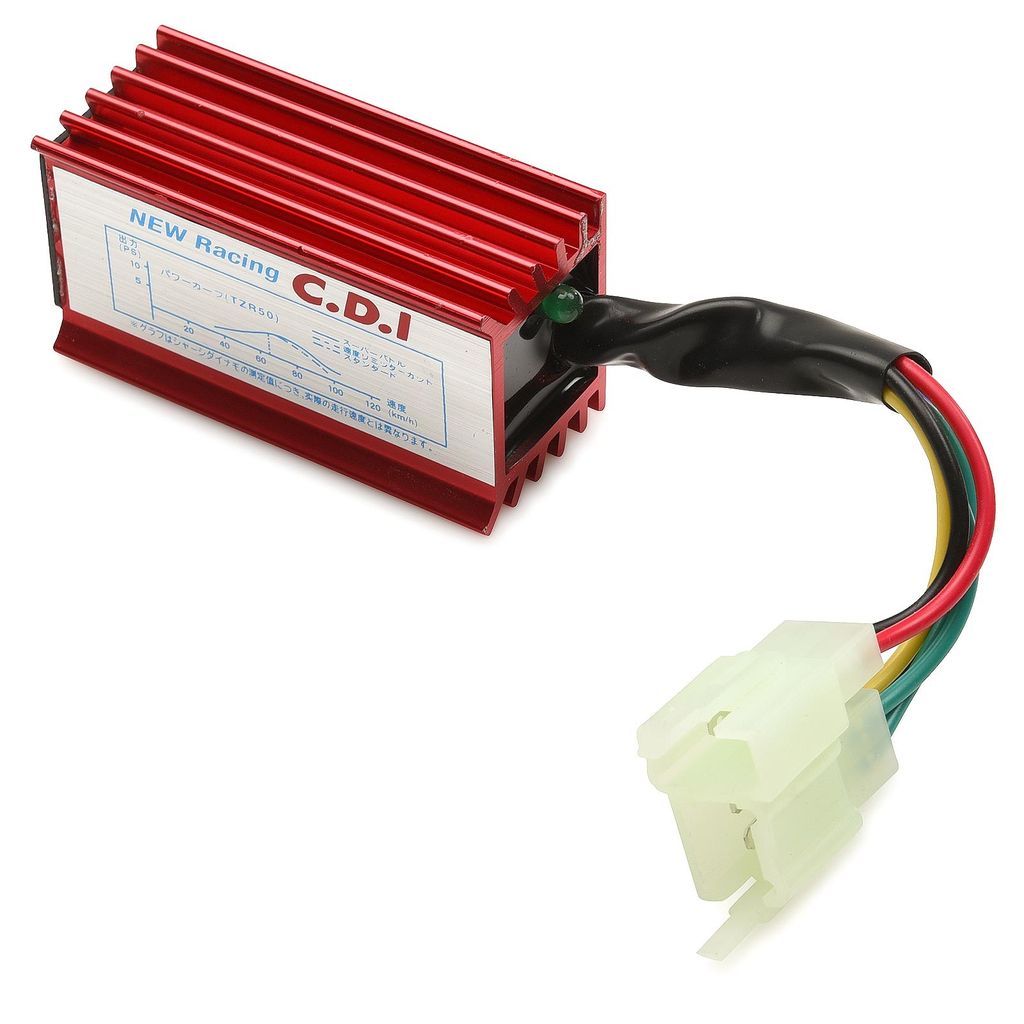 Trim CDI box passande 4-takts motorer av typen CG som har stående cylinder. Vanligt förekommande i storlekarna 150cc och 250cc. Vanligast används denna racing cdi box till dirt bike / fiddy samt fyrhjuling. (passar ej scooter). Standard anslutning med vit snabbkontakt ( dubbelkontakt ) enligt bild. CDI boxen ger motorn en högre tändkurva vilket medför högre varvtal och därmed ökad effekt / toppfart.
